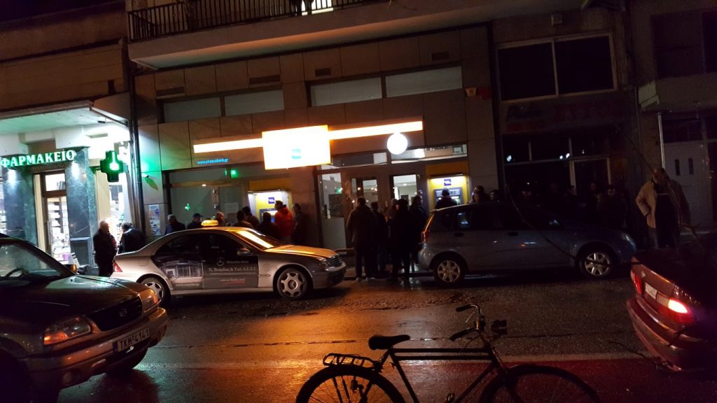 Οι εικόνες που καταγράφονται στα τέλη του μήνα στα ATMs είναι χαρακτηριστικές και δείχνουν πόσο δύσκολα τα βγάζουν πέρα οι μικρομεσαίοι και οι συνταξιούχοι. Στήνονται στην ουρά για να βγάλουν τα χρήματα που πιστώνονται στους λογαριασμούς τους και να μπορέσουν να τακτοποιήσουν τις υποχρεώσεις τους και να… ζήσουν. Χαρακτηριστική η χθεσινοβραδινή φωτό του trikalavoice.gr έξω από υποκατάστημα της Πειραιώς, στην πλατεία Κιτριλάκη. Συνταξιούχοι μέσα στο κρύο, στη βροχή και στο αγιάζι…