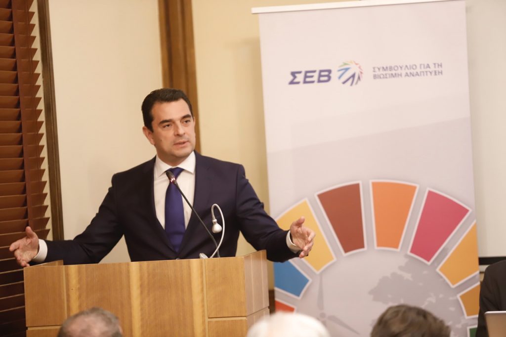 Ως κεντρικός ομιλητής στην επετειακή εκδήλωση για τη Βιώσιμη Ανάπτυξη του ΣΕΒ, κ. Κ. Σκρέκας αναφέρθηκε στα δεδομένα που αλλάζουν στο παγκόσμιο κλίμα (άνοδος θερμοκρασίας, ισχυρές βροχοπτώσεις κλπ.) και στο πως η Ελλάδα μπορεί να προστατευτεί τα επόμενα χρόνια από φυσικά φαινόμενα.