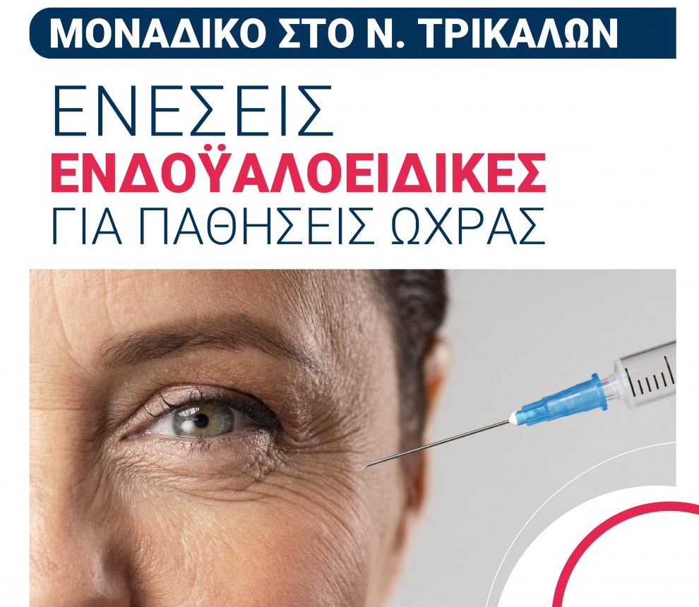 Στην σύγχρονη οφθαλμολογική κλινική ΟΡΑΣΗ στα Τρίκαλα συνταγογραφούνται μέσω Ε.Ο.Π.Υ.Υ. και πραγματοποιούνται οι ενδοϋαλοειδικές ενέσεις για παθήσεις ωχράς (ηλικιακή εκφύλιση ωχράς κηλίδας υγρού τύπου, Απόφραξη φλέβας, Διαβητικό οίδημα ωχράς).