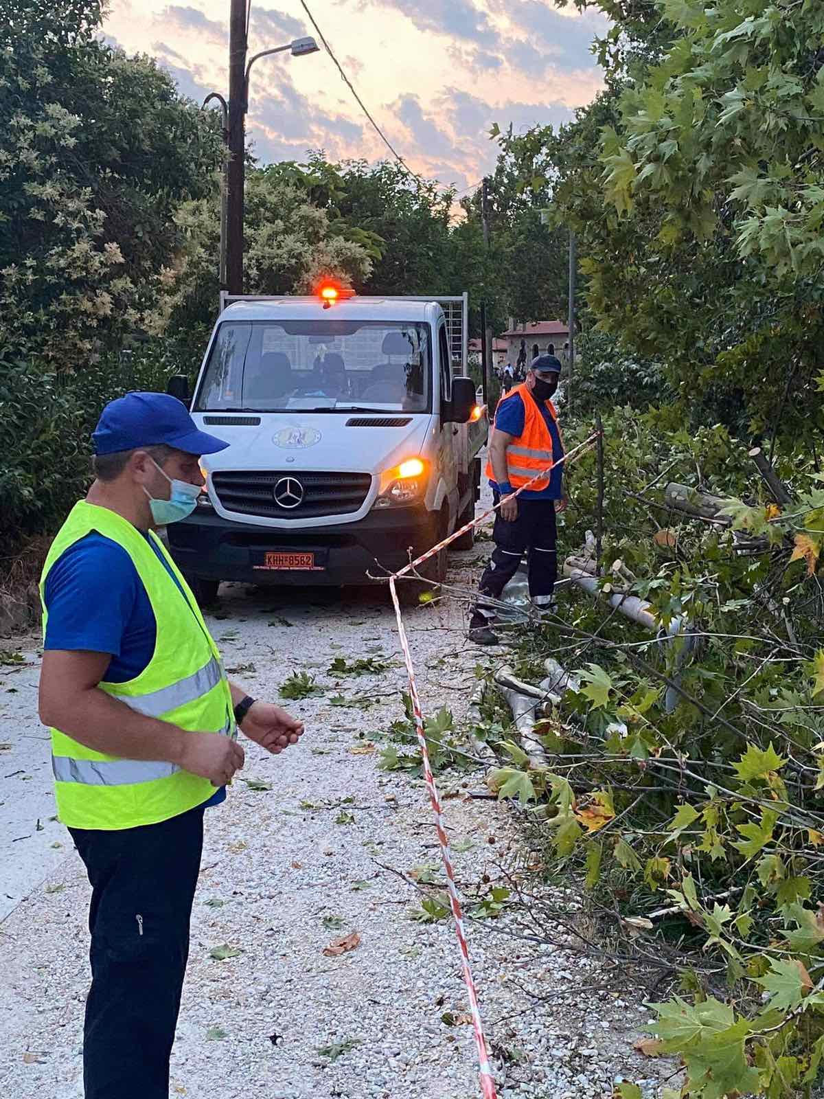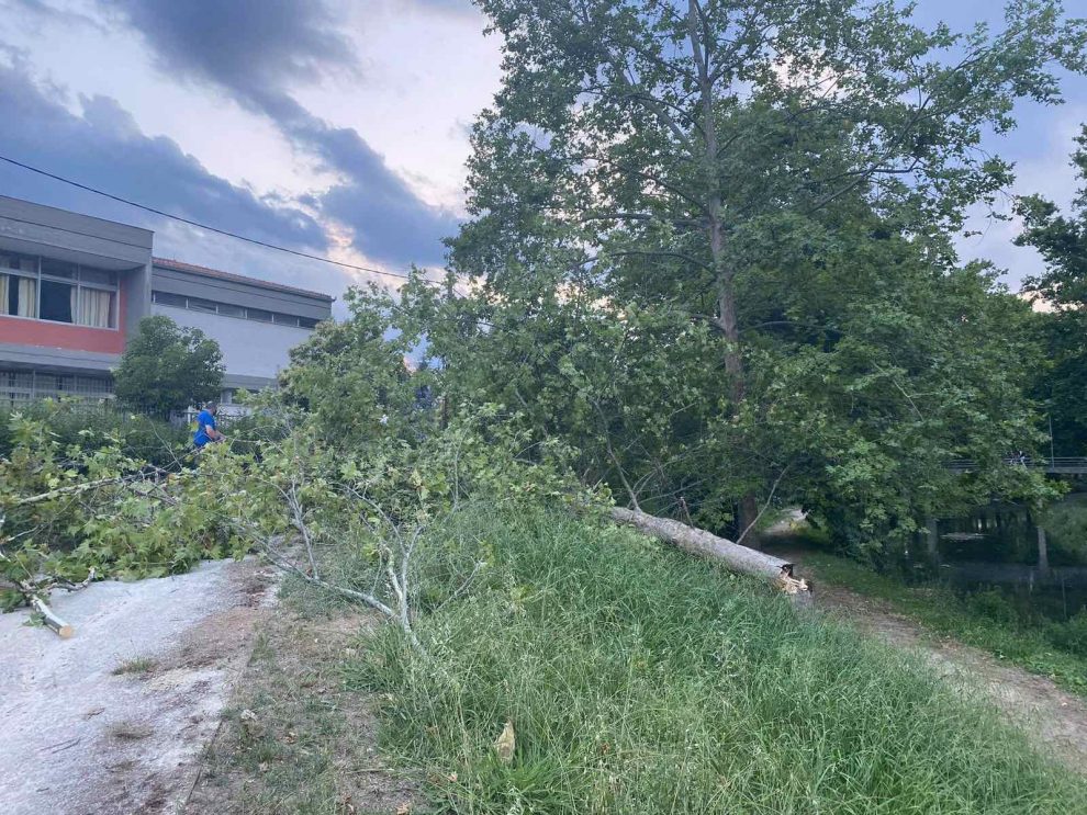 Μεταξύ άλλων και όπως κατέγραψε το trikalavoice.gr ξερίζωσε δέντρο στο Δημοτικό Σχολείο πίσω από το Τζαμί, το οποίο και έπεσε στον παρακείμενο πεζόδρομο. Από θαύμα δεν είχαμε τραυματισμούς καθώς στο σημείο παίζουν παιδιά όλη μέρα. Κινητοποιήθηκε η Πυροσβεστική και η Υπηρεσία Πρασίνου για να το τεμαχίσει και να το απομακρύνει.