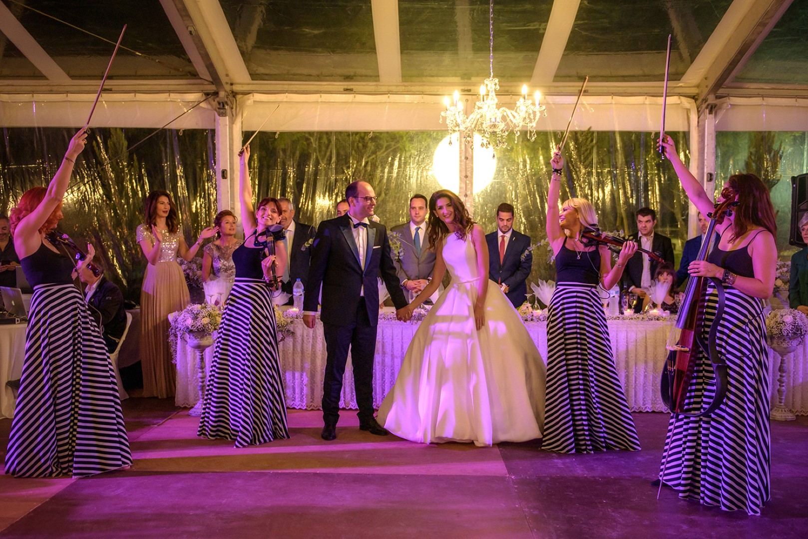 Τον Δημήτρη Δραγατονιάννη και την Άσπα Σουλούκου, η οποία επέλεξε δημιουργία του γνωστού οίκου νυφικών Palatino, στεφάνωσαν οι επιχειρηματίες Στέλιος Μ. Σαράντης και Χρήστος Αλ. Κρητικός, ενώ συγκινημένοι παρέμειναν οι γονείς τους, Ζανέτ Δραγατογιάννη και Σωτήρης-Αλεξάνδρα Σουλούκου.