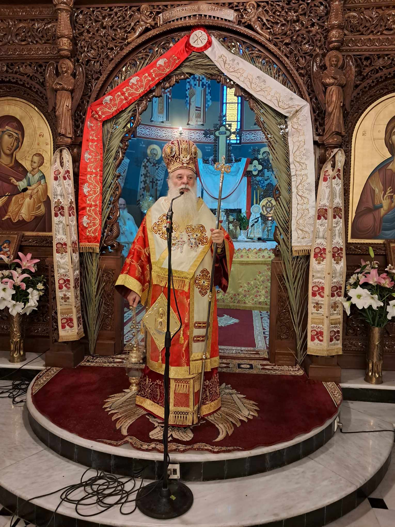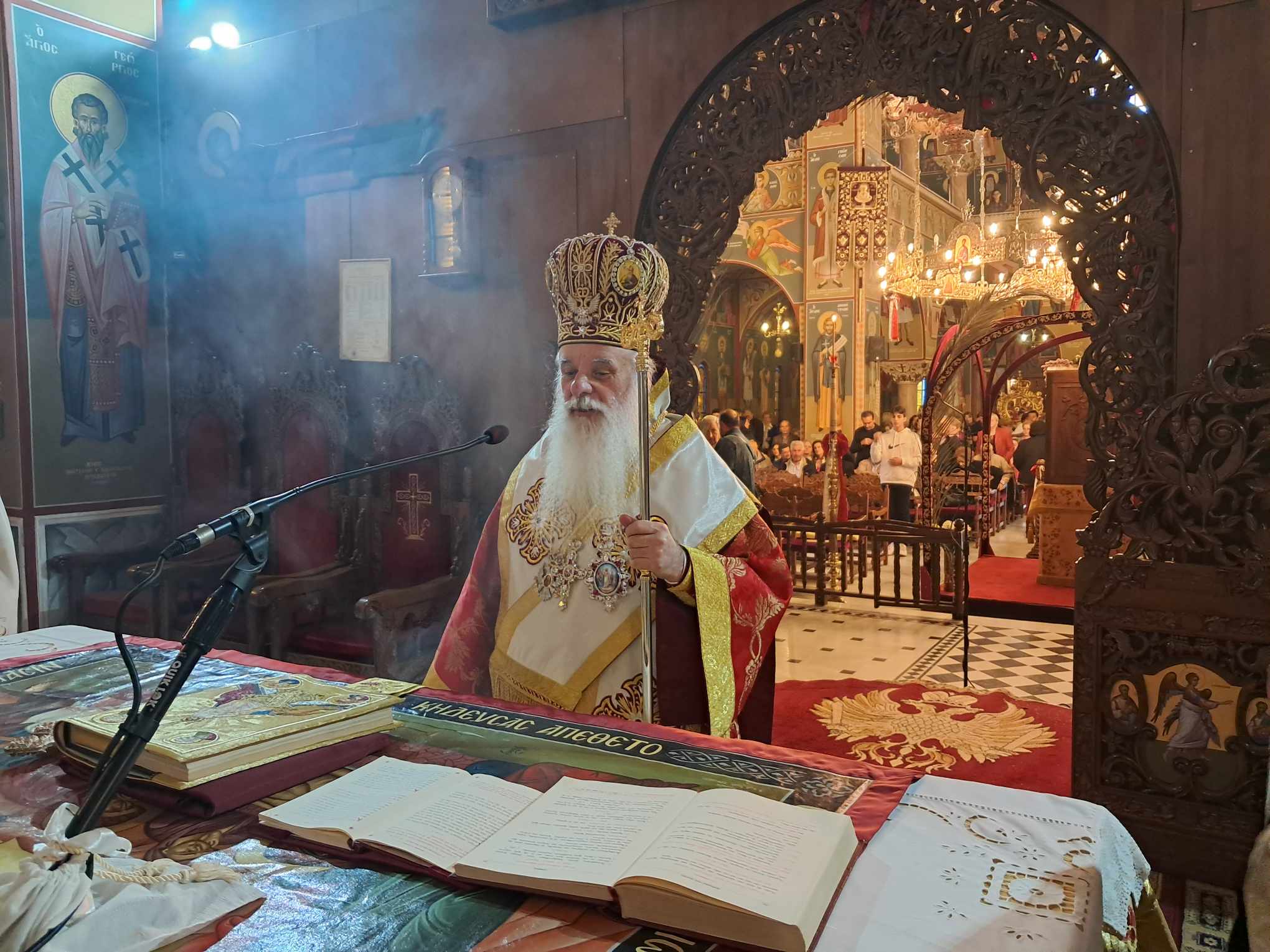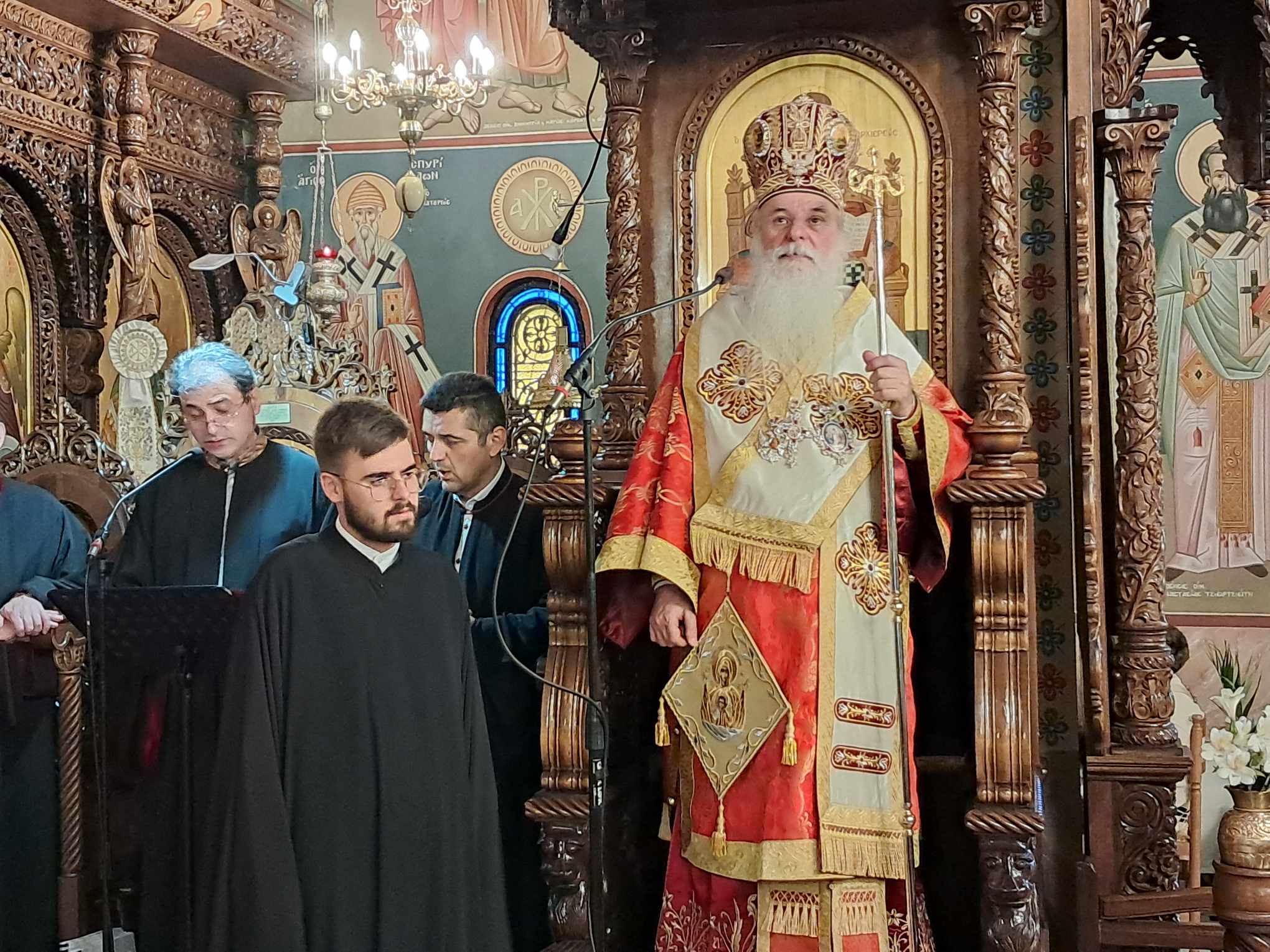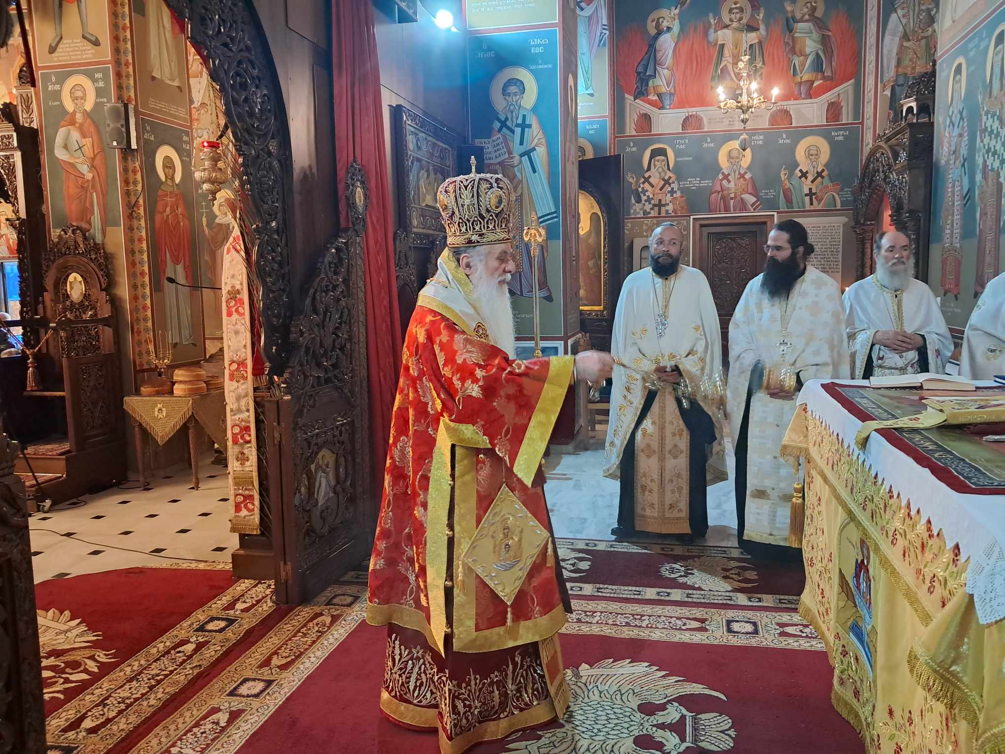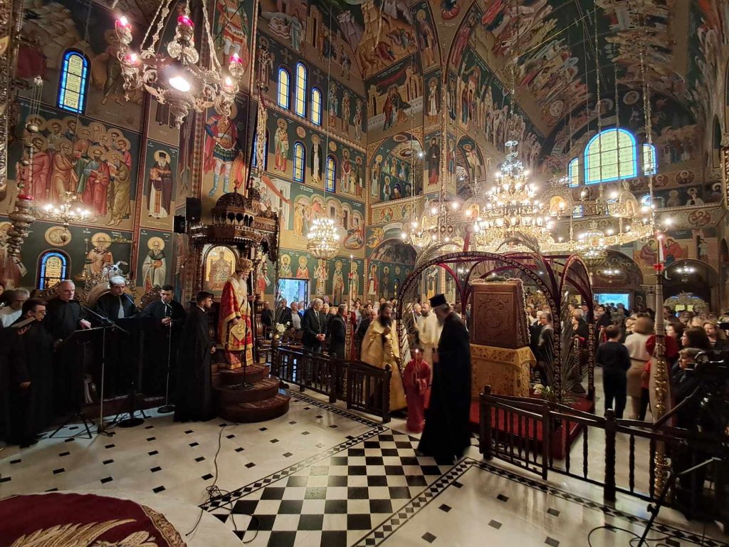 Χοροστάτησε ο Μητροπολίτης Αυλώνος Χριστόδουλος, συμμετοχή πλειάδας Ιερέως και πλήθους πιστών που προσήλθε ευλαβικά να προσκυνήσει την Ιερά Εικόνα. Όπως κατέγραψε μάλιστα το trikalavoice.gr ο Πολιός Μητροπολίτης έψαλε το “Χριστός Ανέστη” και στα βλάχικα, όστις τυγχάνει βλάχικης καταγωγής, αλλά και στα Αλβανικά μιας και επαρχία της γείτονος εκλέχτηκε να διαποιμάνει προ 30ετίας:
