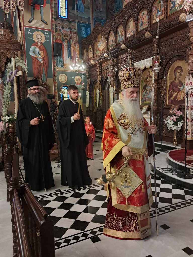 Μέσα στο κλίμα της Αναστάσιμης Χαράς και ευφροσύνης τελέστηκε το απόγευμα της Πέμπτης ο πανηγυρικός Εσπερινός της Ζωοδόχου Πηγής στον φερώνυμο Ιερό Ναό της πόλεώς μας, στα Σαράγια.