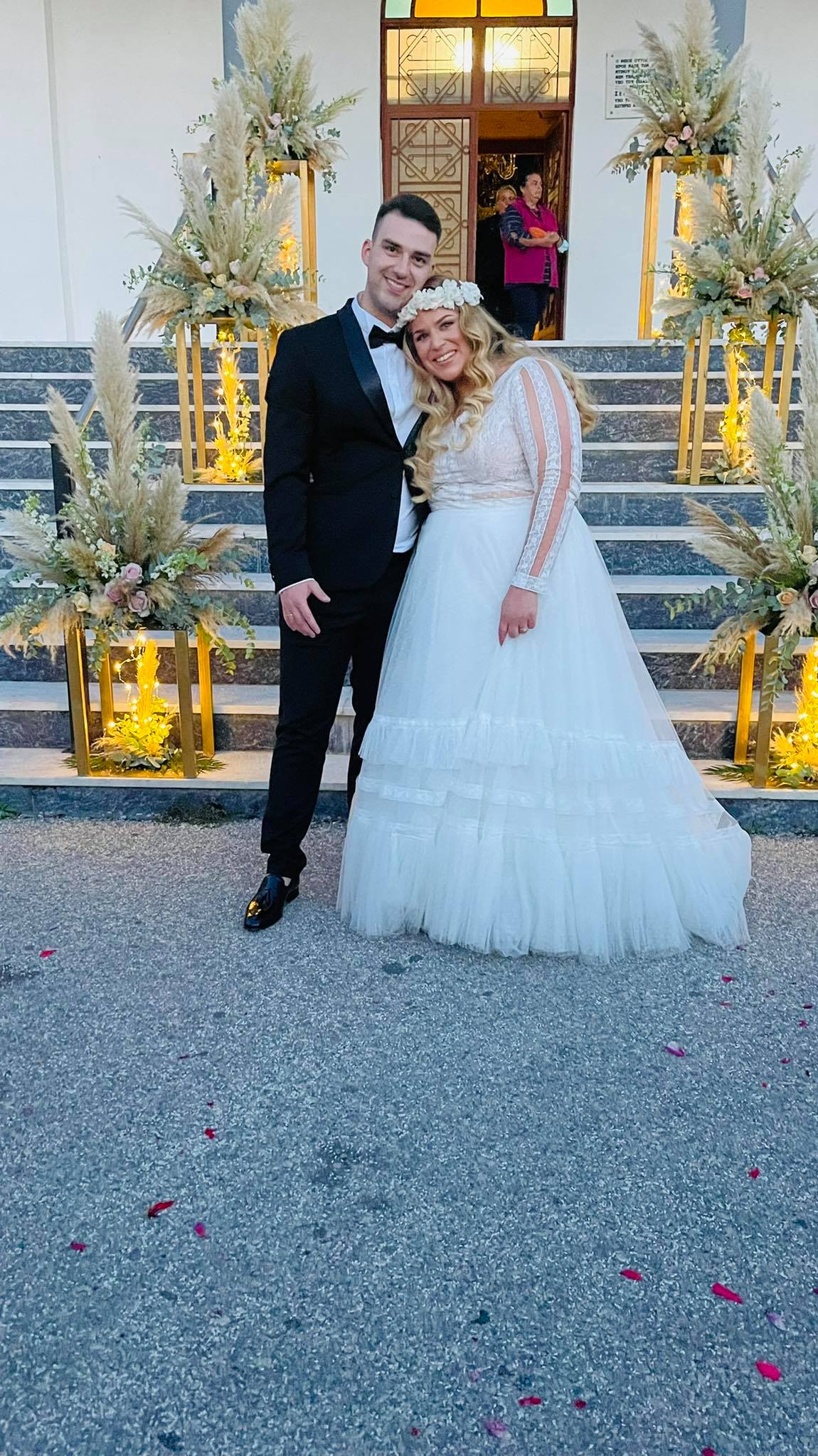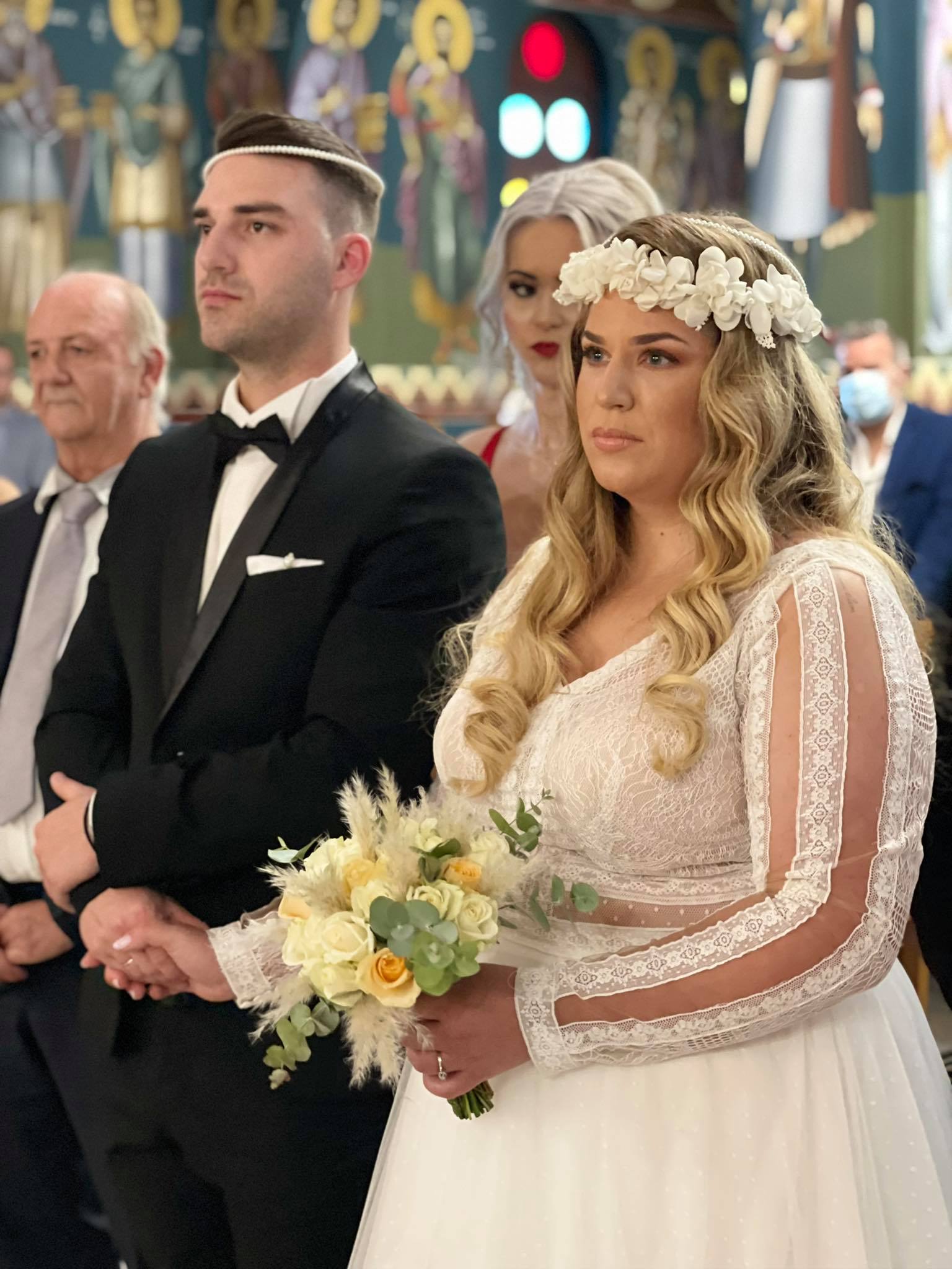 Τα δυο νέα παιδιά, που μόλις προ εβδομάδων βάφτισαν και τον γιο τους, παντρεύτηκαν το περασμένο Σάββατο στον Ιερό Ναό Αγίων Κωνσταντίνου και Ελένης Καλαμπάκας με κουμπάρους τον Βαγγέλη Σουλτσιώτη και τη Φωτεινή Ράχη.