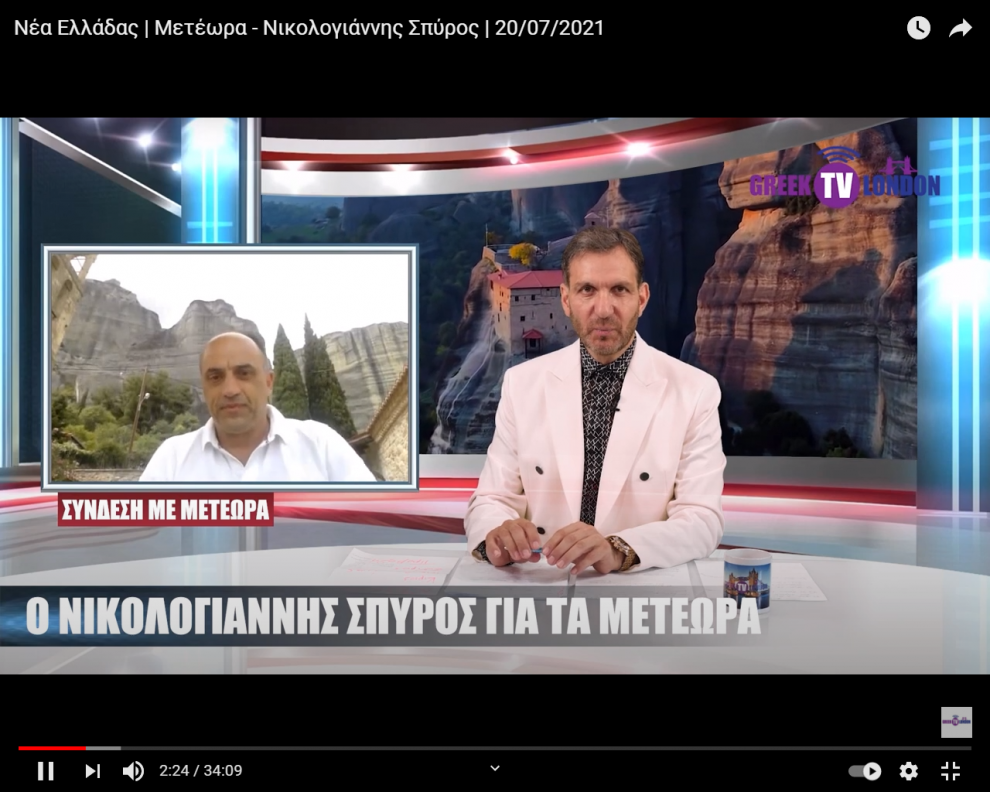 Επόμενος σταθμός ήταν το ελληνικό κανάλι του Λονδίνου με την επωνυμία ‘’GREEKTVLONDON’’ στο οποίο ο κ. Νικολογιάννης Σπύρος, ειδικός σύμβουλος του Δημάρχου του Δ. Μετεώρων σε θέματα Τουρισμού και Οικονομικών, παραχώρησε μία ευρεία συνέντευξη η οποία χαρακτηρίστηκε από πληρότητα και εκτεταμένη πληροφόρηση.