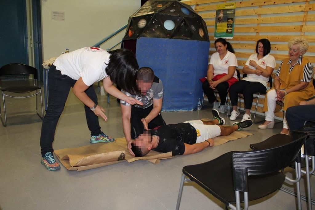 Με μεγάλη χαρά υποδεχτήκαμε επομένως στο σχολείο μας την Παρασκευή 27/9/2019,την κα. Γιοβανοπούλου Ελένη, Νοσηλεύτρια-Εκπαιδεύτρια του Ερυθρού Σταυρού του παραρτήματος Τρικάλων καθώς και την κα. Τσιρογιάννη Έλλη με ομάδα εθελοντών του παραρτήματος. Η ενημέρωση των εκπαιδευτικών και εκπαιδευομένων του σχολείου πραγματοποιήθηκε βιωματικά όταν οι μαθητές κλήθηκαν να αναπαραστήσουν συνθήκες έκτακτης ανάγκης, όπως για παράδειγμα λιποθυμικού επεισοδίου, εγκαυμάτων, αιμορραγίας και να χρησιμοποιήσουν τις αναγκαίες πρώτες βοήθειες.