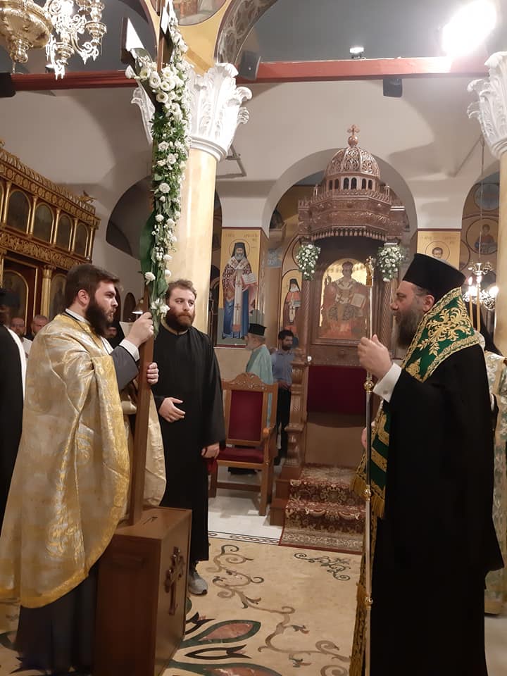 Λαμπρά τιμάται και στην καθ’ ημάς Μητρόπολη η εορτή της Υψώσεως του Τιμίου και Ζωοποιού Σταυρού. Το απόγευμα της Παρασκευής τελέστηκε ενώπιον του Αποτμήματος του Τιμίου Ξύλου που έφτασε από τα Ιεροσόλυμα στην πόλη μας στον Ιερό Ναό Αγίων Κωνσταντίνου και Ελένης μέγας πανηγυρικός Εσπερινός χοροστατούντος του Μητροπολίτου Ναζαρέτ Κυριακού και συγχοροστατούντων του Μητροπολίτου Μοζαμβίκης Χρυσοστόμου και του Μητροπολίτου Τρίκκης & Σταγών Χρυσοστόμου.