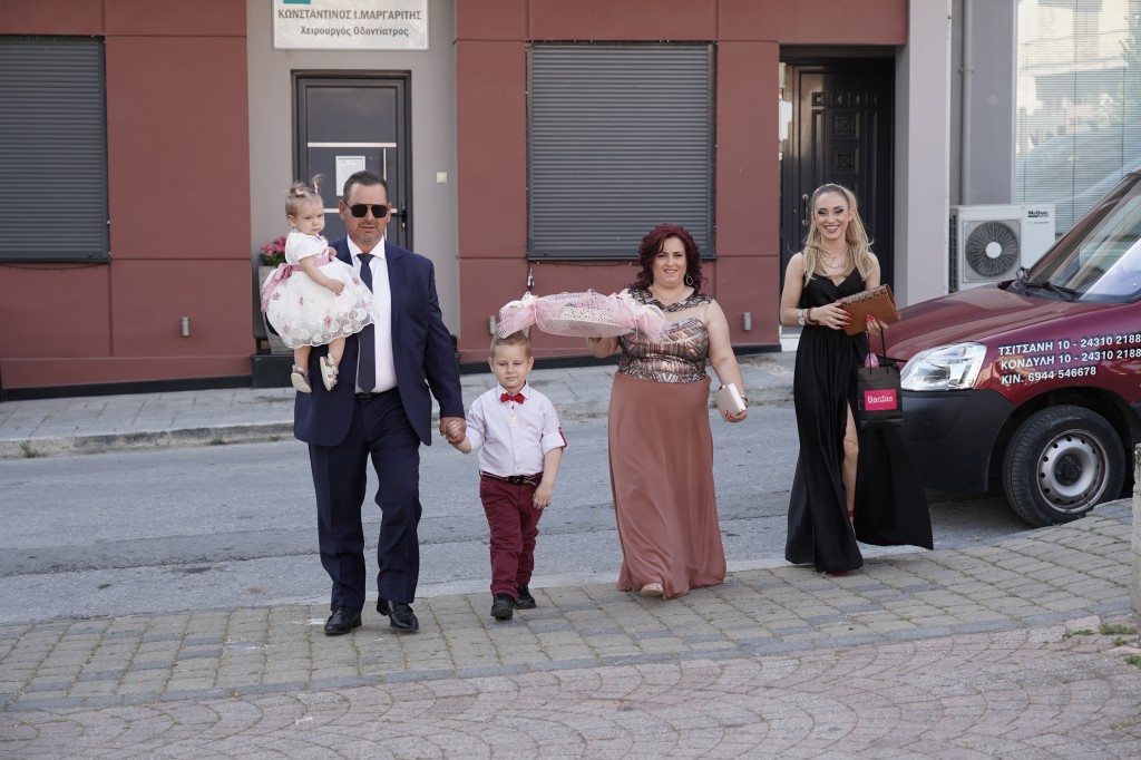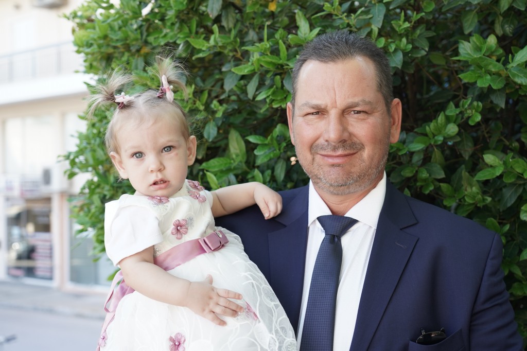 Μαζί με τη σύζυγό του Λίτσα Παππά προσήλθαν στο Μυστήριο του βαφτίσματος της ολίγων μηνών κορούλας τους, που τελέστηκε στον Ιερό Ναό Αγίων Πέτρου και Παύλου Φαρκαδόνας. Η Χρυσάνθη Μπακλαβά και η κόρη της Κατερίνα ήταν οι ανάδοχες και χάρισαν στη χαριτωμένη μικρή το όνομα “Αγγελίνα”. Ακολούθησε δείπνο και… τούρτα με κεράκι για τον Χαλκιά!…