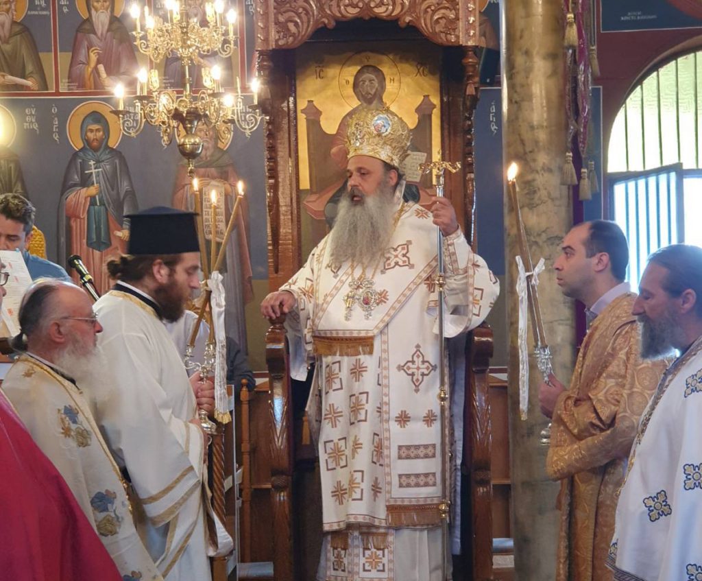 Την Κυριακή 19 Ιουλίου 2020,εορτή των Οσίων και Θεοφόρων Πατέρων των εν τη Δ’ Οικουμενική Συνόδω , ο Μητροπολίτης Σταγών και Μετεώρων Θέκλητος χοροστάτησε κατά την ακολουθία του Ὀρθρου και τέλεσε την θεία Λειτουργία στο ιερό Ναό Αγίας Τριάδος Ασπροκκλησίας . Στο κήρυγμά του ο Σεπτός Ποιμενάρχης μας αναφέρθηκε στην Ευαγγελική περικοπή της ημέρας και τόνισε την σημασία που πρέπει να δίνει ο καθένας μας ώστε να γίνεται με τις πράξεις του αιτία να δοξάζεται ο ουράνιος Πατέρας μας .