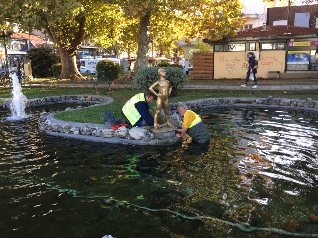 Το θρυλικό αγαλματάκι της κεντρικής πλατείας των Τρικάλων επέστρεψε ξανά στη θέση του.