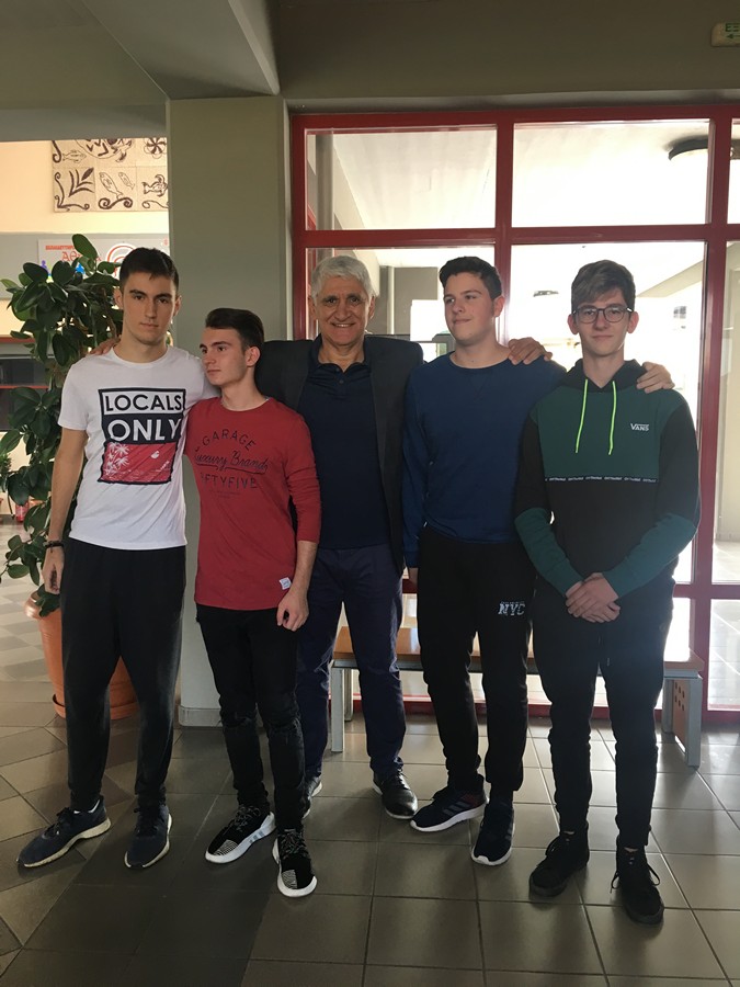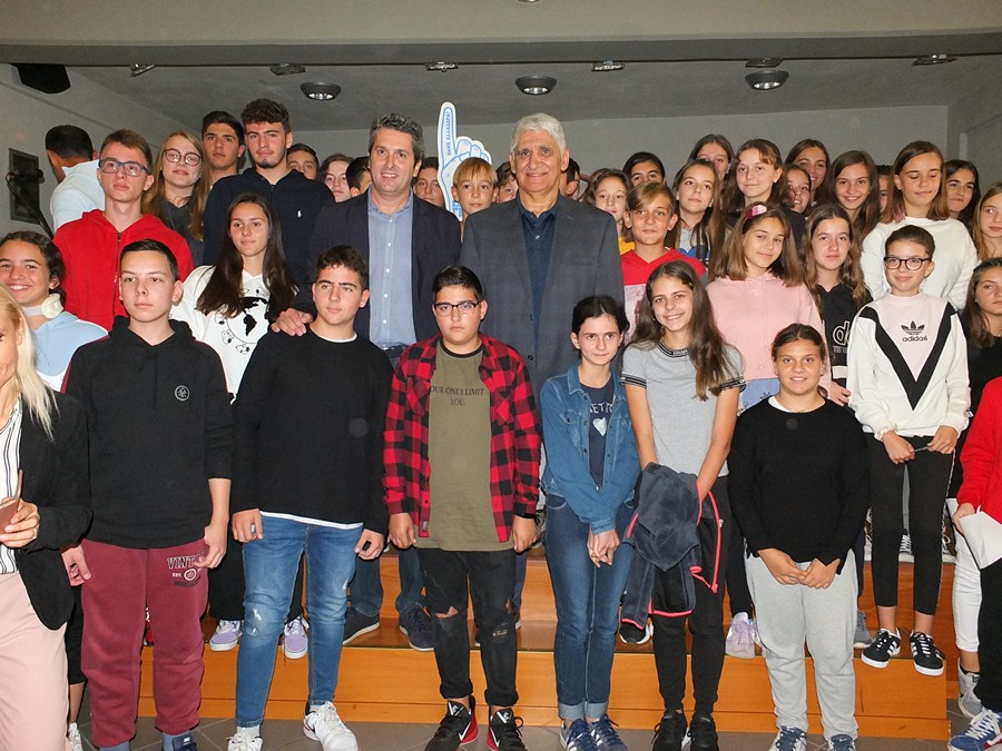 Την Τετάρτη 7 Οκτωβρίου φιλοξενήθηκε στο χώρο του Σχολείου μας ο πρώην διεθνής Έλληνας καλαθοσφαιριστής και νυν προπονητής, Παναγιώτης Γιαννάκης με αφορμή την αναγόρευσή του ως επίτιμου Διδάκτορα στη Σ.Ε.Φ.Α.Α. Τρικάλων. Αρχικά ο υποδιευθυντής του Γυμνασίου κ. Γιαννούλης καλωσόρισε τον προσκεκλημένο κάνοντας μια σύντομη αναφορά στην μεγάλη καριέρα του. Στη συνέχεια ακολούθησε ανάγνωση του βιογραφικού του από τους μαθητές Γούσιο Γιάννη, Γκαραβέλλα Αντώνη και Στεργίου Έμη σε συνδυασμό με προβολή βίντεο με τις σημαντικότερες στιγμές της καριέρας του, όπως η κατάκτηση του Ευρωμπάσκετ τόσο ως παίκτης όσο και ως προπονητής.