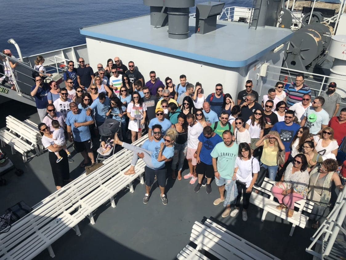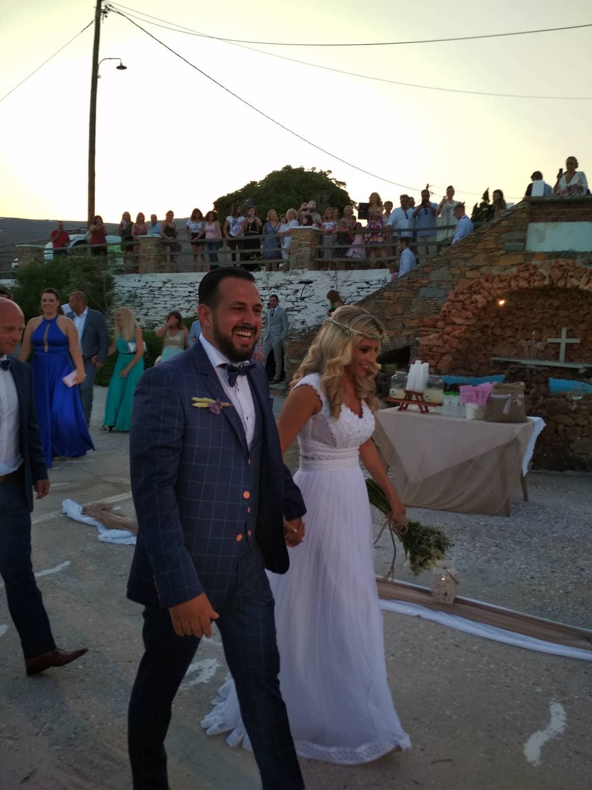 Ο Βασίλης και η Φωτεινή παντρεύτηκαν στο Κυκλαδονήσι και περισσότεροι από 250 Τρικαλινοί έφτασαν εκεί για να τους ευχηθούν.