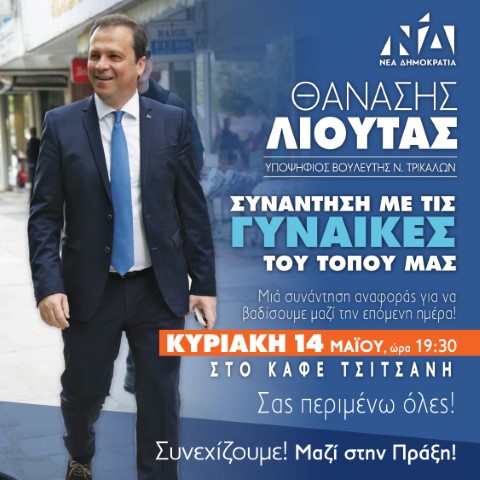 Στο πλαίσιο αυτό, ο εκ νέου υποψήφιος βουλευτής της ΝΔ στο Νομό μας, Θανάσης Λιούτας θέτει σε προτεραιότητα τον ρόλο των γυναικών και τον αναδεικνύει προγραμματίζοντας συνάντηση με τις γυναίκες.