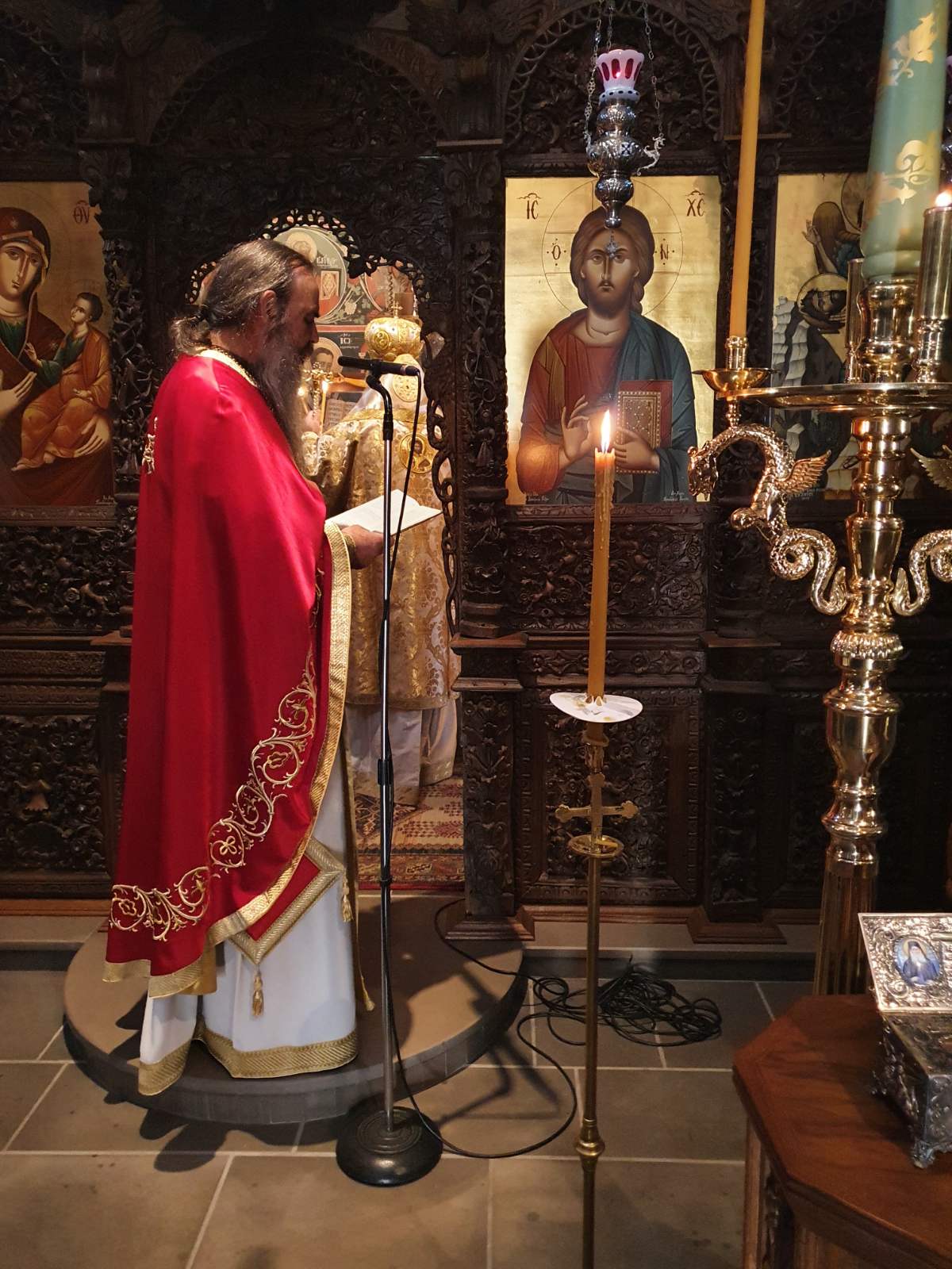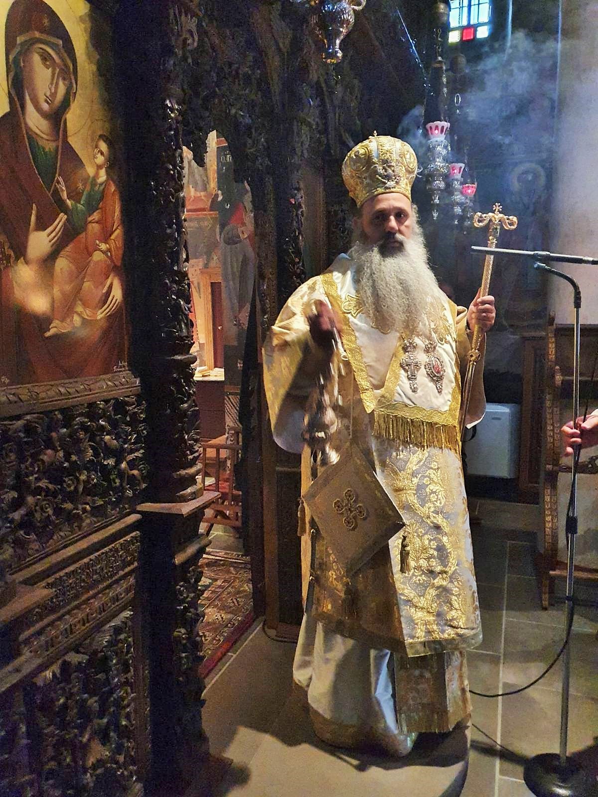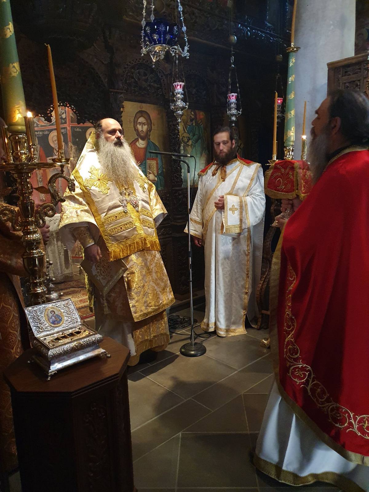 Μέσα σε ένα καταπράσινο τοπίο και με τα χρώματα του Φθινοπώρου να δεσπόζουν, ο Σεπτός μας Ποιμενάρχης λειτούργησε για πρώτη φορά στην προσφάτως ανακηρυχθείσα κυρίαρχη Μόνη των Σιαμάδων, με συλλειτουργό τον Καθηγούμενο αυτής, Πανοσιολογιώτατο Αρχιμανδρίτη Μακάριο Ιακωβάκη.