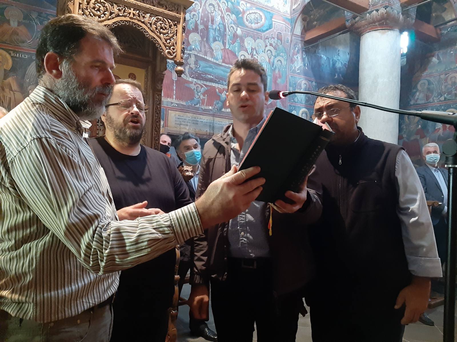 Στον ιερό αναλόγιο διακόνησαν οι καλλικέλαδοι ψάλτες της Μονής, πλαισιωμένοι από τον Πρωτοψάλτη της Ιεράς Μητροπόλεώς μας κ. Κωνσταντίνο Οικονόμου.