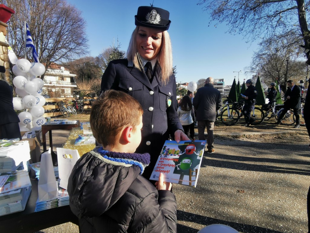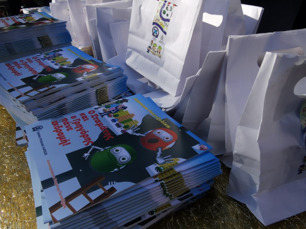 Το πρωί του Σαββάτου 7 Ιανουαρίου 2023 η συνδιοργάνωση του Δήμου Τρικκαίων, της Δημοτικής Αστυνομίας Τρικκαίων, του Τμήματος Τροχαίας της Δ/νσης Αστυνομίας Τρικάλων και της Ενωσης Αστυνομικών Υπαλλήλων Ν. Τρικάλων αφορούσε στην κυκλοφοριακή αγωγή. Στην είσοδο του Μύλου των Ξωτικών προσωπικό της Δ/νσης Αστυνομίας Τρικάλων διένειμε το βιβλίο της Υπαρχιφύλακα κ. Δέσποινας Γκουτζολίκα με τίτλο «Ο Σταμάτης και ο Γρηγόρης πάνε εκδρομή». Ένα βιβλίο που περιγράφει με σκίτσα και απλά λόγια, όσα βασικά οφείλουν να γνωρίζουν τα μικρά παιδιά για την κίνηση με ποδήλατο ή πεζή, τα σήματα, τους κανόνες οδικής κυκλοφορίας. Ταυτοχρόνως, δίνοντας δώρα με τη συνδρομή και της «Αστική Ανάπτυξη» Τρικάλων (της εταιρείας του Δήμου Τρικκαίων), ενώ οι οδηγοί ποδηλατών και μηχανών υποδέχονταν τα μικρά παιδιά, φωτογραφίζονταν μαζί τους, εξηγούσαν, πώς οι ίδιοι ασκούν τα καθήκοντά τους με αυτά τα οχήματα.