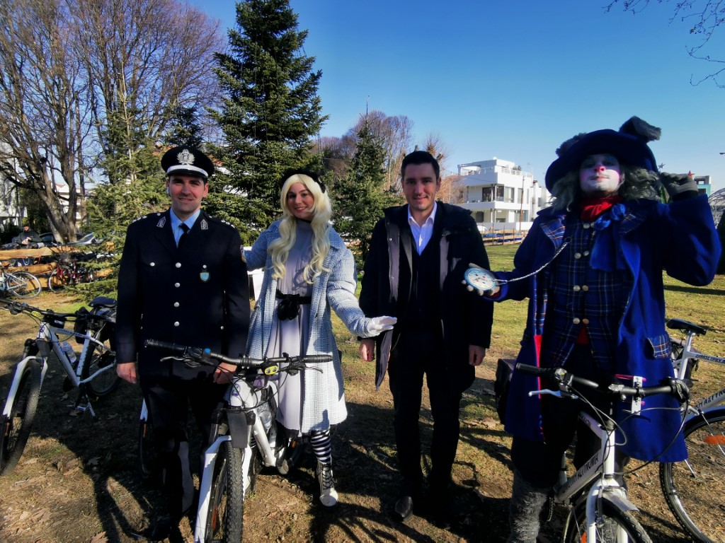 Με «όχημα» ένα βιβλίο για την κυκλοφοριακή αγωγή και «οδηγούς», τους/τις ποδηλάτες/ισσες και οδηγούς μηχανών της Δημοτικής Αστυνομίας Τρικκαίων και της Τροχαίας Τρικάλων, η Αλίκη και ο Ταρελοκούνελος από τον Μύλο των Ξωτικών υποδέχθηκαν εκδήλωση για την κυκλοφοριακή αγωγή.