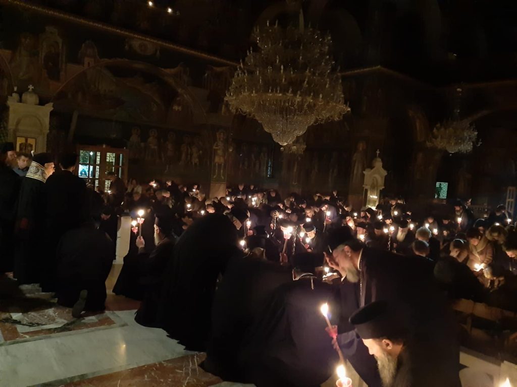 Με το πέρας του Εσπερινού τα πλήθη των πιστών, έβαλαν μετάνοια στον Δεσπότη του, ζητώντας συγχώρεση.