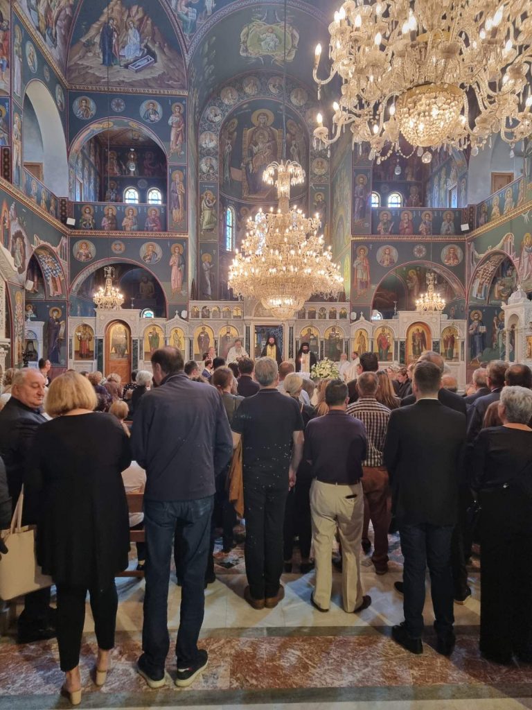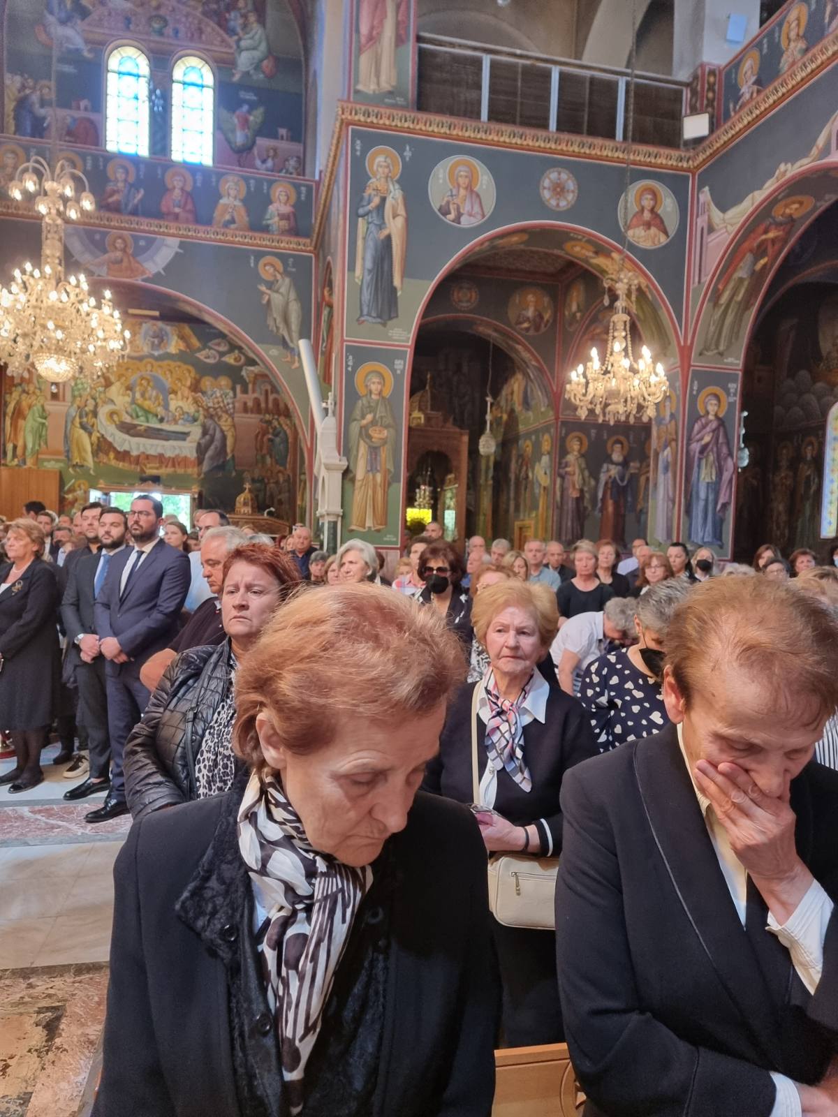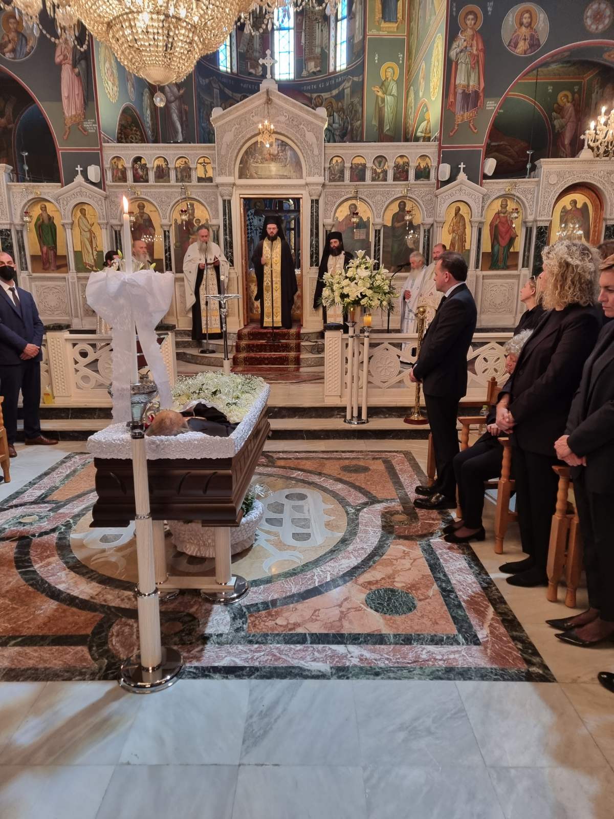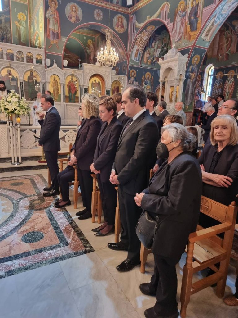 Όπως κατέγραψε το trikalavoice.gr η Εξόδιος Ακολουθία τελέστηκε στον Ιερό Μητροπολιτικό Ναό Αγίου Νικολάου και αυτής προέστη ο Πρωτοσύγκελλος της Μητροπόλεως Τρίκκης π. Αλέξιος Κανίνας, συμμετοχή των εφημερίων του Ναού. Συγκινητικά ήταν τα λόγια με τα οποία τον αποχαιρέτησε ο γιος του και βουλευτής του ΠΑΣΟΚ, Γιώργος.
