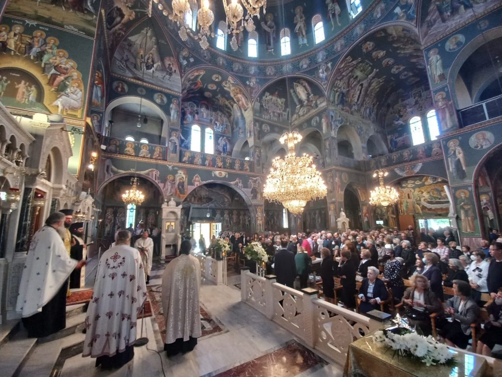 Όπως κατέγραψε το trikalavoice.gr η Εξόδιος Ακολουθία τελέστηκε στον Ιερό Μητροπολιτικό Ναό Αγίου Νικολάου και αυτής προέστη ο Πρωτοσύγκελλος της Μητροπόλεως Τρίκκης π. Αλέξιος Κανίνας, συμμετοχή των εφημερίων του Ναού. Συγκινητικά ήταν τα λόγια με τα οποία τον αποχαιρέτησε ο γιος του και βουλευτής του ΠΑΣΟΚ, Γιώργος.