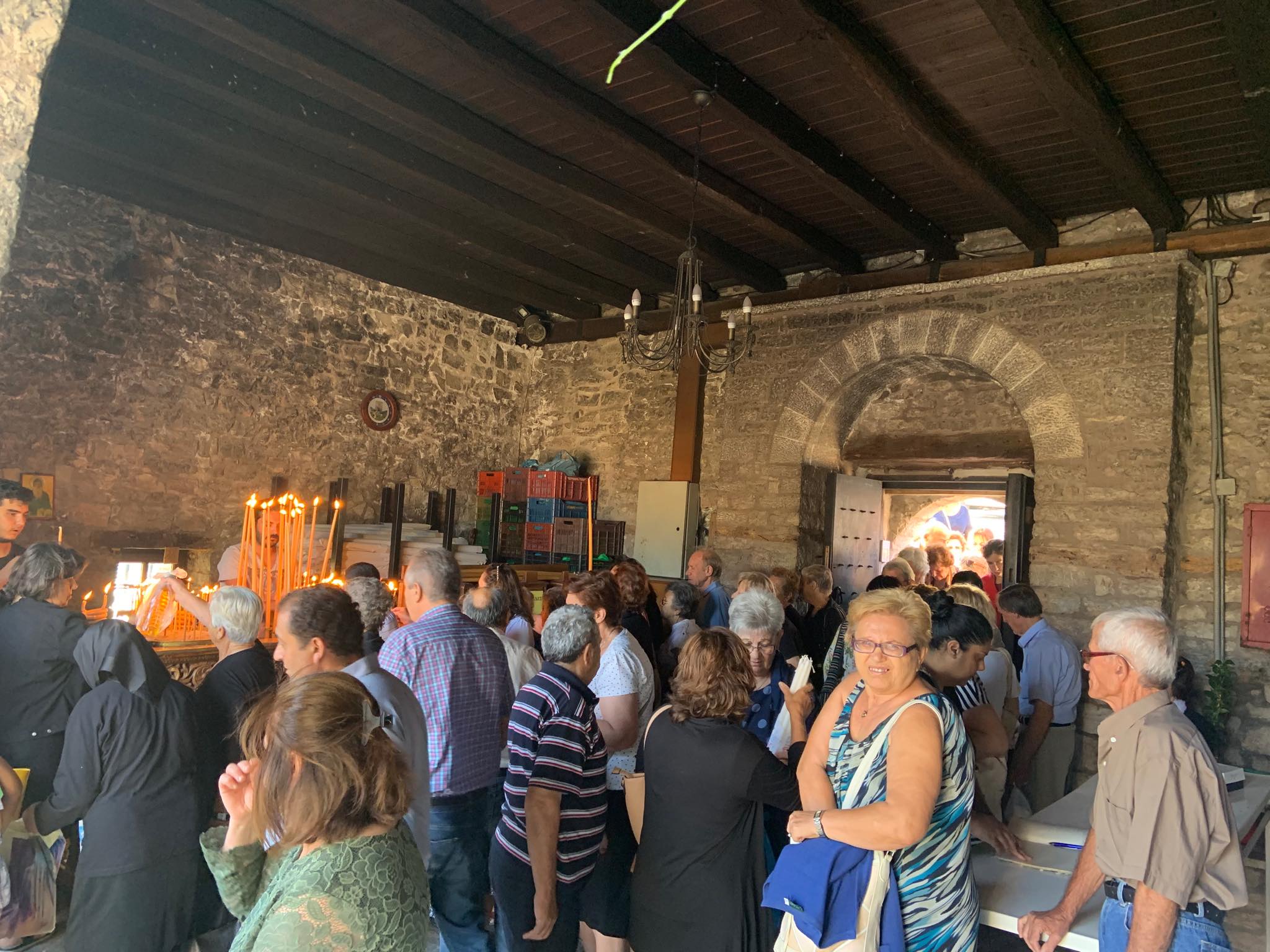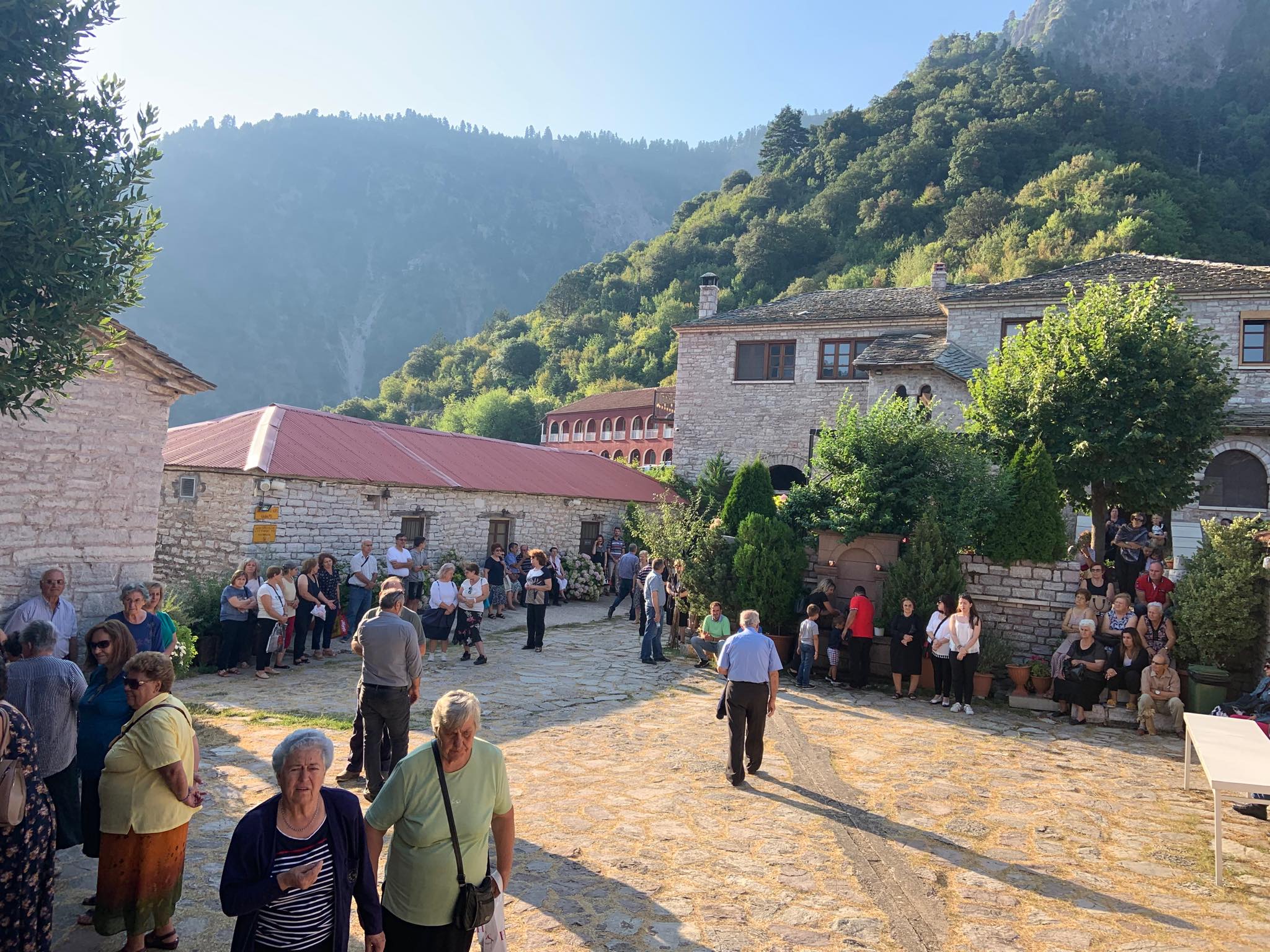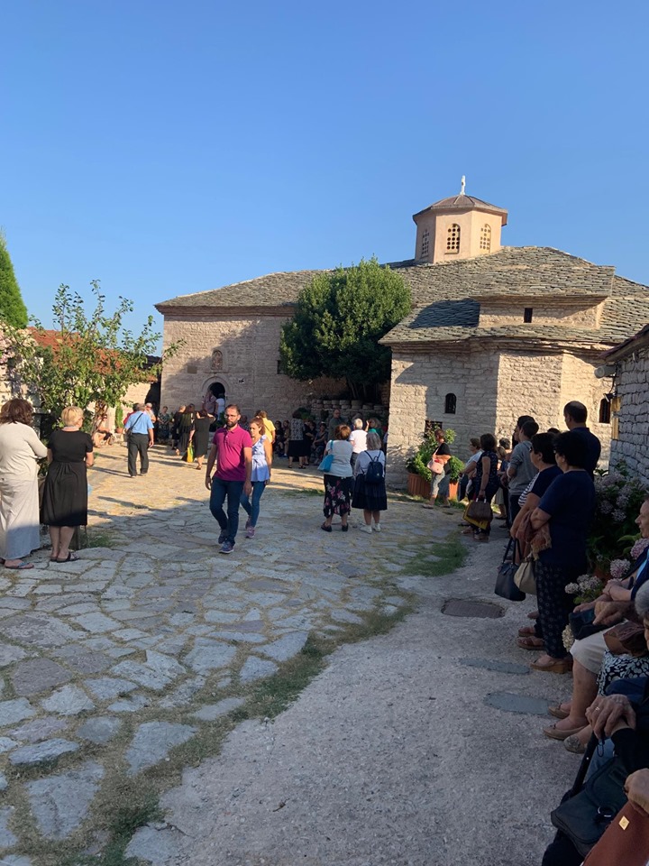 Ο Ηγούμενος της Μονής, Αρχιμανδρίτης Νεκτάριος Μητρόπουλος, ο οποίος έχει καταβάλει υπεράνθρωπες προσπάθειες αναστήλωσης και αναγέννησης αυτής, δέχθηκε με χαμόγελο σήμερα τους πιστούς και τους ομίλησε καταλλήλως για την Παναγία μας.