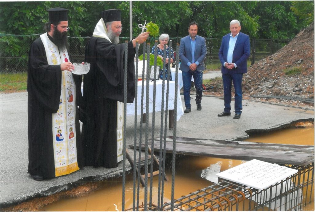 Στις 18.9.2018 αποφάσισε να κάνει δεκτή τη δωρεά των 11 στρ. και 600 τ.μ. κτισμάτων (εκεί που λειτουργούσε ο παιδότοπος). Στις 5.4.2019 υπογράψαμε το συμβόλαιο της δωρεάς, όπου στο φύλο 5 αναφέρεται η κατασκευή ενός μικρού ναού, η οποία θα γίνει με δικά μας έξοδα. Στις 5.5.2020 συναντηθήκαμε εκ νέου με τον Δήμαρχο στο γραφείο του, παρουσία του ιδιώτη μηχανικού Δημήτρη Μούρκα, όπου ενημερώθηκε για το ξεκίνημα των εργασιών της ανέγερσης του ναού από την τεχνική εταιρεία των αδελφών Μέμτσα (Η άδεια θα βγει στο δήμο αφού ο χώρος είναι δημοτικός) και εν συνεχεία οριστικοποιήσαμε το ακριβές σημείο των εργασιών, όπου μπήκε συνολικά μέσα στη μελέτη όλης της κατασκευής).