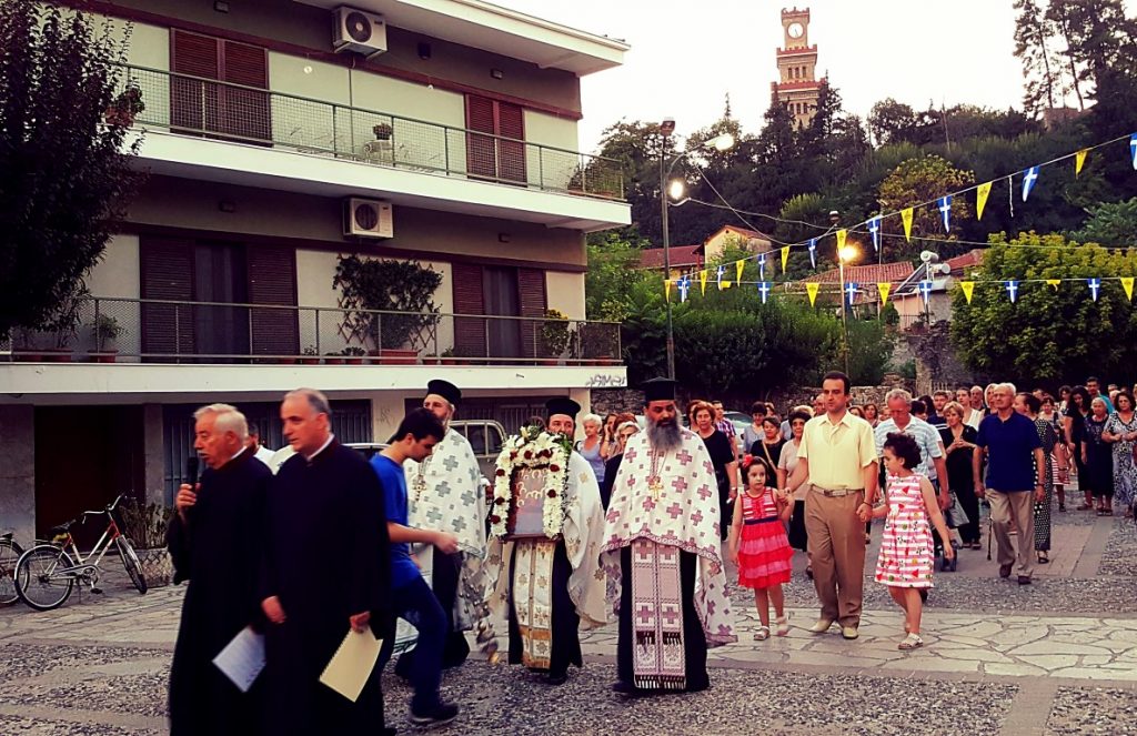 Μέγας Πανηγυρικός Εσπερινός μετ’ αρτοκλασίας και Θείου Κηρύγματος και τα Εγκώμια ενώπιον της Ιεράς Εικόνος της Κοιμήσεως της Θεοτόκου.