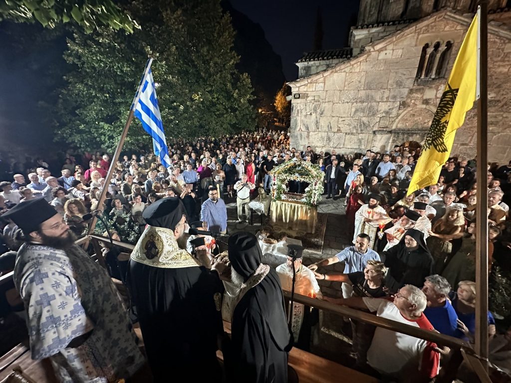 Όπως κατέγραψε το trikalavoice.gr το απόγευμα της Τρίτης τελέστηκε στο καθολικό του Ναού, ο οποίος είναι Μετόχι της Μονής Δουσίκου, Μέγας Πανηγυρικός Εσπερινός της Αποδόσεως της Κοιμήσεως της Θεοτόκου, χοροστατούντος του Μητροπολίτου Τρίκκης, Γαρδικίου και Πύλης Χρυσοστόμου, συμμετοχή δε Μοναχών του Δουσίκου. Εψάλησαν τα Εγκώμια στη Θεοτόκο και έγινε Λιτάνευση του Επιταφίου της.