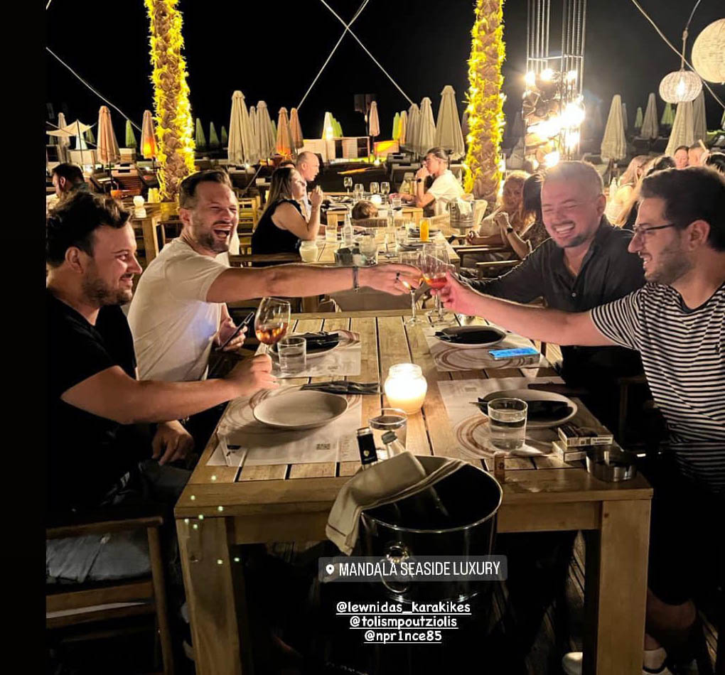 Κι επειδή ο Λεωνίδας έχει φίλους πολλούς και καλούς άρχισαν ήδη τα… bachelor. Το πρώτο έγινε το βράδυ του Σαββάτου σε παραλιακό restaurant της Κατερίνης και διακρίνονται μαζί του ο Τόλης Μπουτζιώλης, ο Αλέξανδρος Γκίμτσας και ο Νίκος Παπαχρήστος. Οι ώρες οι καλές…