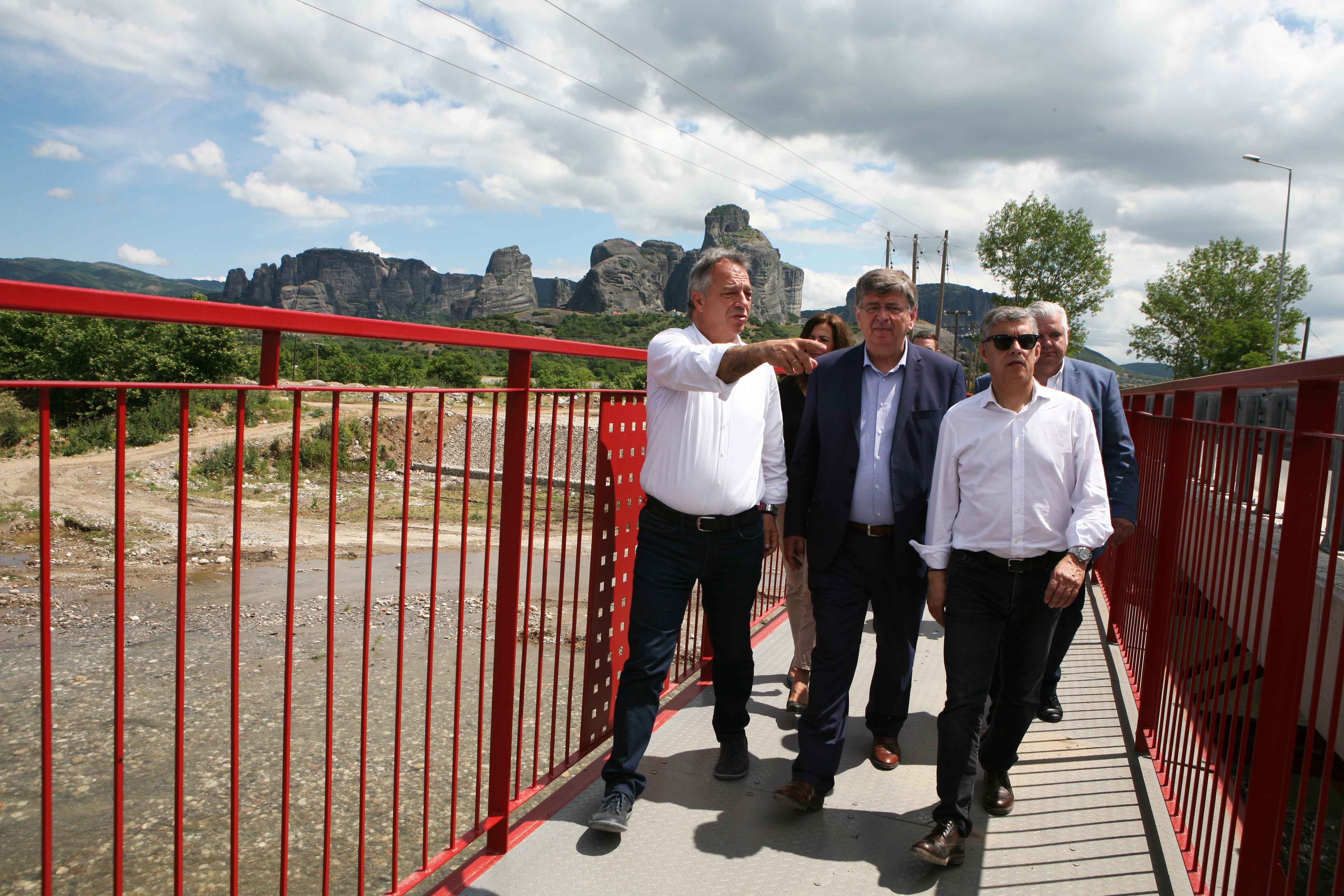 Χθες ολοκληρώθηκε και η τελευταία φάση εργασιών στη γέφυρα Διάβας – Καλαμπάκας με την τοποθέτηση της μεταλλικής πεζογέφυρας. Ο περιφερειάρχης Θεσσαλίας Κώστας Αγοραστός, ο Αντιπεριφερειάρχης Χρήστος Μιχαλάκης, ο Δήμαρχος Μετεώρων Χρήστος Σινάνης και ο περιφερειακός σύμβουλος Γιάννης Μπουτίνας διέσχισαν πρώτοι τη νέα πεζογέφυρα.