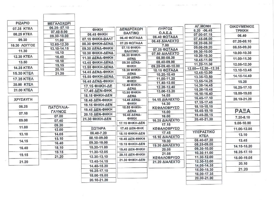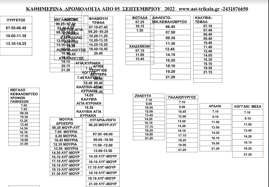 Γίνεται γνωστό στο επιβατικό κοινό ότι το χειμερινό πρόγραμμα δρομολογίων του Αστικού ΚΤΕΛ Τρικάλων παραμένει ίδιο με πέρυσι, όπως στους παρακάτω πίνακες και θα τεθεί σε ισχύ από 5 Σεπτεμβρίου.