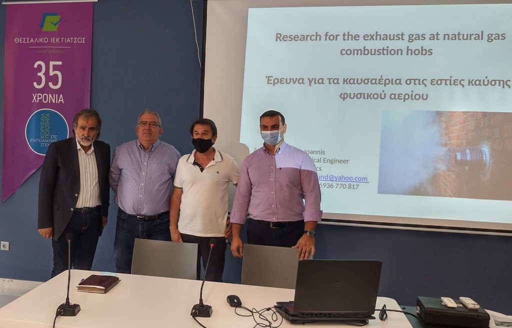Συγκεκριμένα, παρουσιάστηκε η διπλωματική εργασία του Μηχανολόγου – Μηχανικού και καθηγητή του ΙΕΚ, κ Μπετούνη Ιωάννη με θέμα «Έρευνα για τα καυσαέρια στις εστίες καύσης φυσικού αερίου» από τον ίδιο και την κ. Ιωσηφίδου Ελένη του τμήματος επαγγέλματος της περιφέρειας Λάρισας.