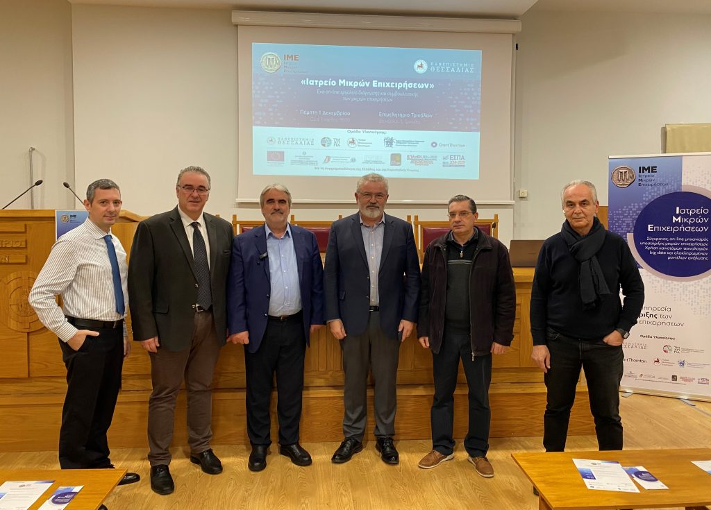 Την Πέμπτη, 2 Δεκεμβρίου 2022, στις 18:00, πραγματοποιήθηκε στο Επιμελητήριο Τρικάλων η παρουσίαση του Ερευνητικού Έργου “Ιατρείο Μικρών Επιχειρήσεων – IME” και των αποτελεσμάτων του, στην οποία συμμετείχαν μέλη του συνεργατικού σχήματος του έργου, από το Πανεπιστήμιου Θεσσαλίας και την Επιχείρηση Συμβουλευτικών Υπηρεσιών Grant Thornton.