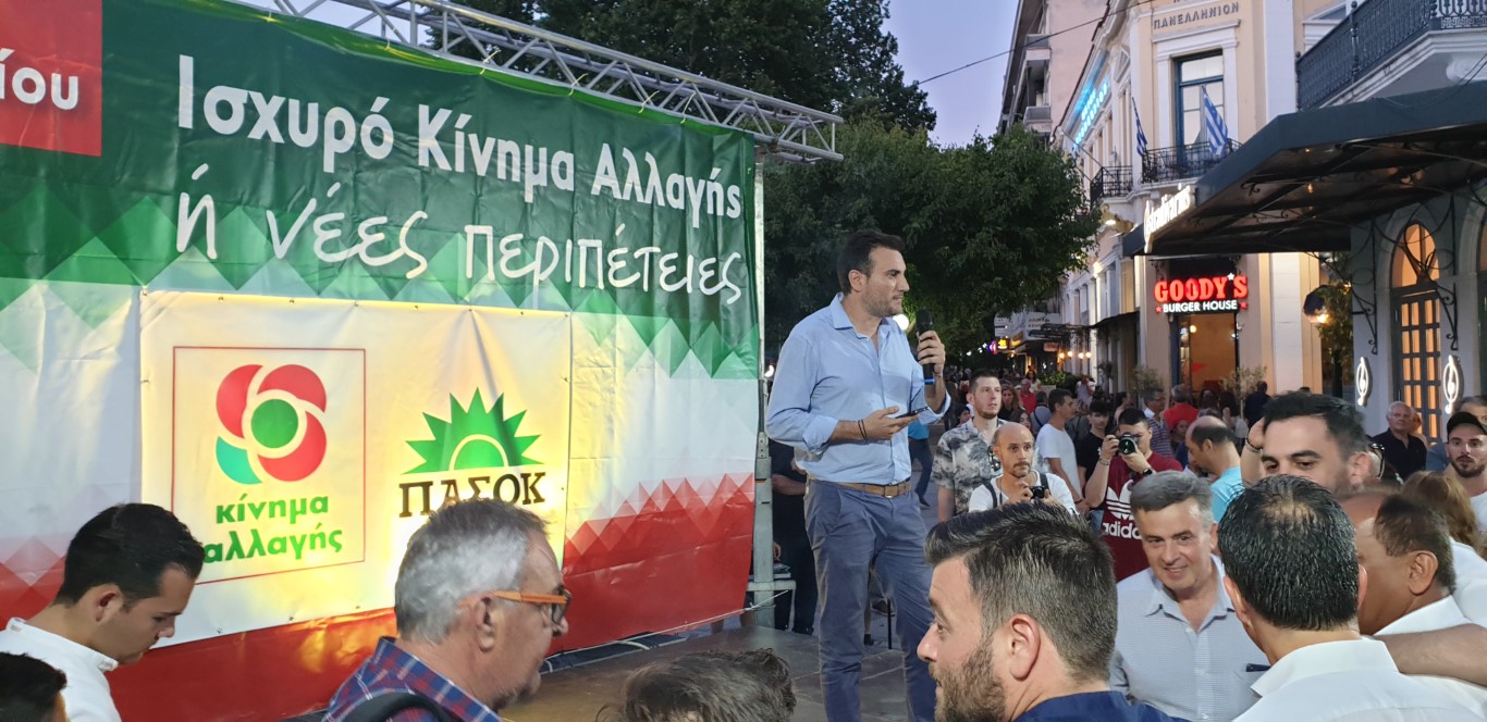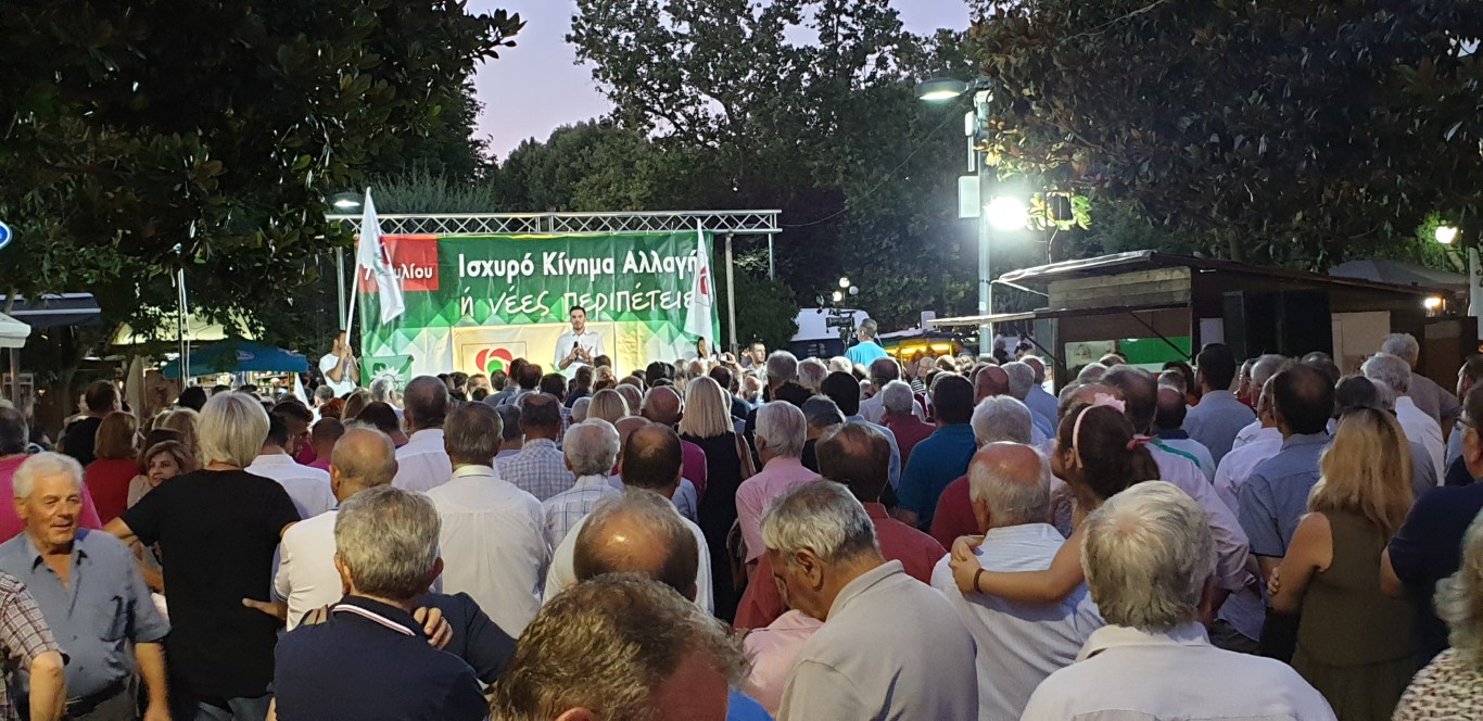 Με κεντρικό ομιλητή το γραμματέα του ΚΙΝ.ΑΛ. Μανώλη Χριστοδουλάκη και… άσματα ΠΑΣΟΚ, η κεντρική προεκλογική συγκέντρωση του κόμματος.