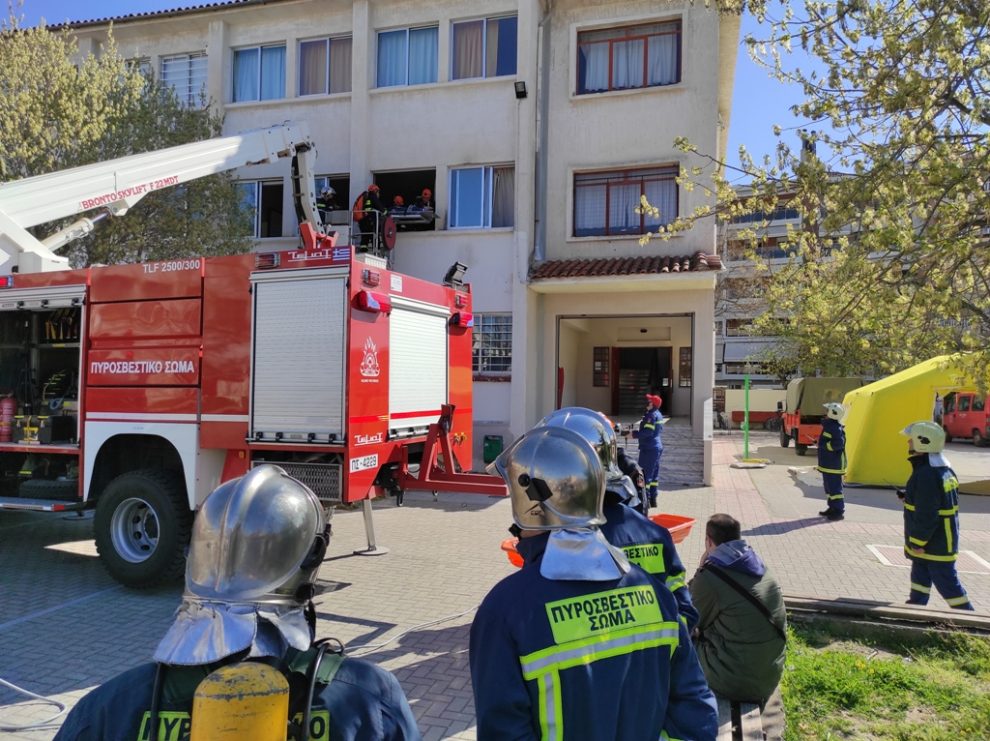 Η άσκηση αφορούσε εκδήλωση σεισμικής δραστηριότητας στα γεωγραφικά όρια της Π.Ε. Λάρισας και πρόκληση επεισοδίων με εκτεταμένες υλικές ζημιές, μερική κατάρρευση κτιρίων ή άλλων υποδομών με την ύπαρξη εγκλωβισμένων ατόμων, σε συνδυασμό με εκδήλωση πυρκαγιάς. Σύμφωνα με το σενάριο της άσκησης η περιοχή χτυπήθηκε από σεισμό 5,9 βαθμών της κλίμακας Ρίχτερ με επίκεντρο 5 χλμ. δυτικά της πόλης της Λάρισας και διάρκεια 10 δευτερολέπτων. Ο σεισμός προκάλεσε εκτεταμένες ζημιές σε κτίρια της πόλης και τοπικά πτώση της ηλεκτρικής τάσης, πλήττοντας το σχολικό συγκρότημα όπου στεγάζεται το 9ο Γυμνάσιο στη Λάρισα (Χαραυγή). Επίσης, από βλάβη σε έναν από τους καυστήρες θέρμανσης φυσικού αερίου στον ημιυπόγειο χώρο του λεβητοστασίου του 9ου Γυμνασίου, προκλήθηκε έκρηξη και εκδήλωση πυρκαγιάς. Ταυτόχρονα σημαντική διαφυγή φυσικού αερίου σε σωλήνα του βανοστασίου εξωτερικά του λεβητοστασίου ανεφλέγη δημιουργώντας πίδακα φωτιάς που προκάλεσε επέκταση των εστιών στα γραφεία της Γραμματείας. Οι καπνοί της φωτιάς μεταφέρονται μέσα από τα διάφορα ανοίγματα, πόρτες – αεραγωγούς και εισέρχονται στα γραφεία του ισογείου (των καθηγητών, της Γραμματείας και της Διευθύντριας) που βρίσκονται ακριβώς πάνω από το λεβητοστάσιο και κατ’ επέκταση στους γειτονικούς χώρους, δημιουργώντας νέες εστίες και ατμόσφαιρα αποπνικτική. Εκπαιδευτικοί και μαθητές εκκένωσαν τις αίθουσες διδασκαλίας και τα γραφεία άμεσα και με ασφάλεια, σύμφωνα με το Σχέδιο έκτακτης ανάγκης της σχολικής μονάδας. Σε μια αίθουσα (Α4) του πρώτου ορόφου όμως ένας μαθητής τραυματίστηκε από πτώση αντικειμένου και ακινητοποιήθηκε. Ταυτόχρονα ένας εκπαιδευτικός εγκλωβίστηκε στην Γραμματεία λόγω πτώσης αντικειμένων και εξαιτίας των πυκνών καπνών και της μεγάλης θερμοκρασίας που εκλύονται από την πυρκαγιά στο λεβητοστάσιο και των εστιών αισθάνεται δύσπνοια και αδιαθεσία. Επίσης, λόγω μερικής κατάρρευσης εσωτερικού τοίχου στο ισόγειο είχε εγκλωβιστεί σε κάποιο χώρο ένα άτομο του συνεργείου καθαρισμού και αγνοείται. Μετά το πέρας της σεισμικής δόνησης εφαρμόστηκε η διαδικασία εκκένωσης των αιθουσών ανά όροφο που περιγράφεται στο Σχολικό Σχέδιο Έκτακτης Ανάγκης, ακολουθώντας την αρχή της εγγύτητας των αιθουσών σε σχέση με την έξοδο, δηλαδή εκκενώνονται πρώτα τα τμήματα και οι πτέρυγες που βρίσκονται πλησιέστερα στο κάθε κλιμακοστάσιο.