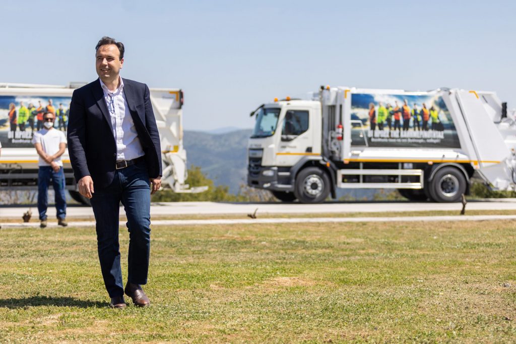 Ο Δήμαρχος Τρικκαίων Δημήτρης Παπαστεργίου παρουσίασε τα απορριμματοφόρα και τη νέα προσπάθεια του Δήμου, την Παρασκευή 15 Απριλίου 2022, σε όλους/ες τους/τις παρευρισκόμενους/ες στην υπογραφή της σύμβαση για τη Μονάδα επεξεργασίας Απορριμμάτων της δυτικής Θεσσαλίας.