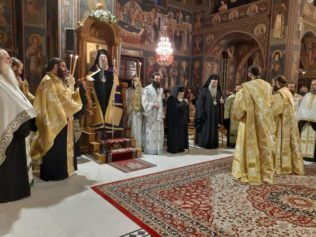 Στον Πανηγυρικό Εσπερινό χοροστάτησε ο Επίσκοπος Ευκαρπίας Ιερόθεος εκ του Οικουμενικού Πατριαρχείου, συμπαραστατούμενος υπό των Μητροπολιτών, Εδέσσης, Πέλλης και Αλμωπίας Ιωήλ, Κίτρους, Κατερίνης και Πλαταμώνος Γεωργίου, Νέας Κρήνης και Καλαμαριάς Ιουστίνου και του Κυριάρχου Μητροπολίτου Σταγών και Μετεώρων Θεοκλήτου. Όπως και πέρυσι έτσι και φέτος λόγω των μέτρων για την αντιμετώπιση του κορωνοϊού δεν έγινε η λιτανεία της Αγίας Ειικόνας και της Τιμίας Κάρας του Αγίου.