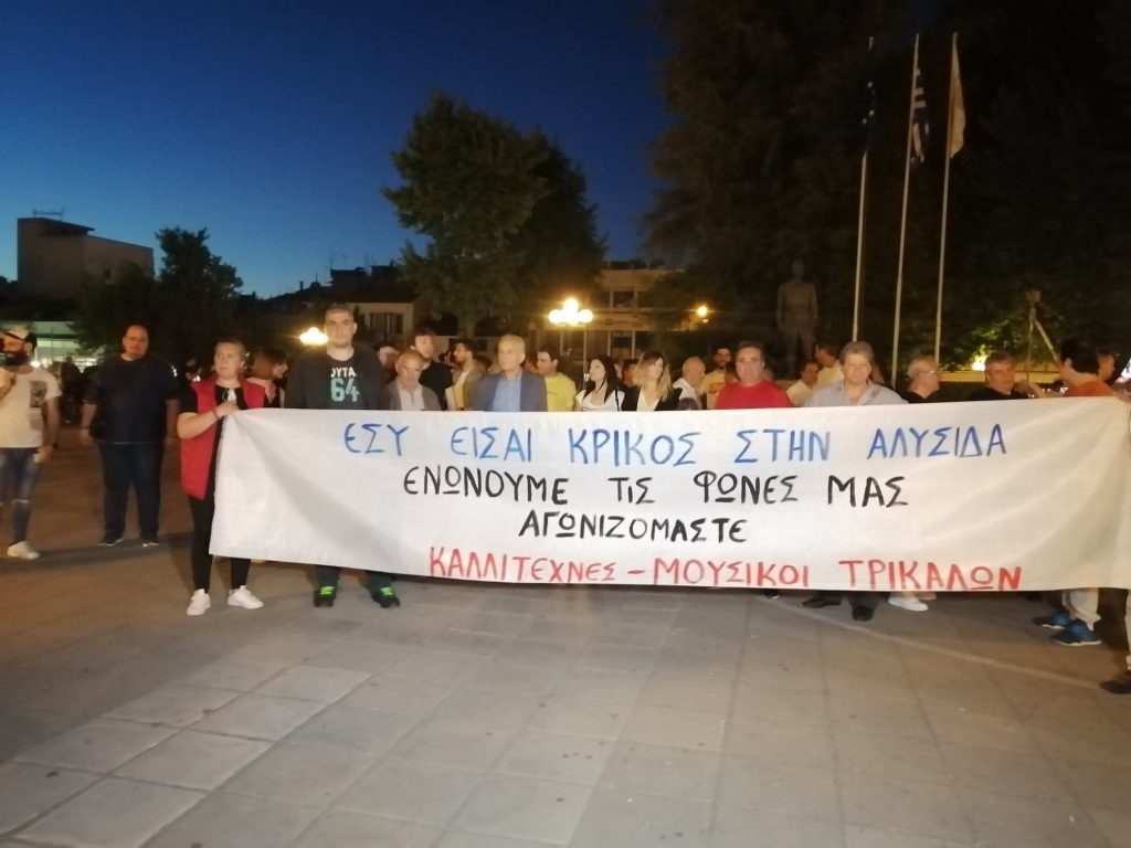 Αγανακτισμένοι στις πλατείες και οι μουσικοί και τραγουδιστές των Τρικάλων.