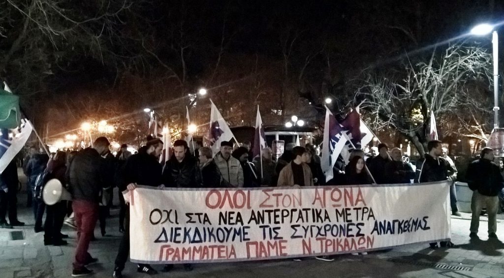 Μια έκτακτη και μαχητική κινητοποίηση οργάνωσε το ΠΑΜΕ στα Τρίκαλα ενάντια στην κατάθεση στη Βουλή του νέου αντιλαϊκού πολυνομοσχέδιου-φωτιά που έφερε η κυβέρνηση ΣΥΡΙΖΑ – ΑΝΕΛ για το κλείσιμο της 3ης «αξιολόγησης».