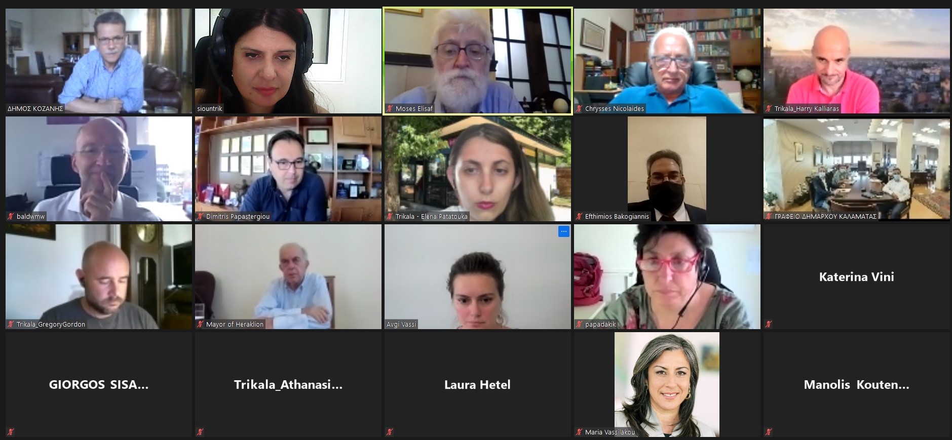 Στην τηλεδιάσκεψη μετείχαν ακόμη, ο Γ.Γ. Χωρικού Σχεδιασμού και Αστικού Περιβάλλοντος του Υπουργείου Περιβάλλοντος και Ενέργειας, Ευθύμιος Μπακογιάννης, ο αν. Γενικός Διευθυντής της Γενικής Διεύθυνσης Κινητικότητας και Μεταφορών της Ευρωπαϊκής Επιτροπής (DG Move) Matthew Baldwin και οι Δήμαρχοι Ηρακλείου Βασίλης Λαμπρινός, Ιωαννιτών Μωυσής Ελισάφ, Καλαμάτας Θανάσης Βασιλόπουλος, Κοζάνης Λάζαρος Μαλούτας και εκπρόσωποι της πρωτοβουλίας, οι κ. Μαρία Βασιλάκου και Χρύση Νικολαΐδη. Στην τηλεδιάσκεψη ήταν παρούσα και η αρμόδια της ευρωπαϊκής πολιτικής Laura Hetel. Η τηλεδιάσκεψη αφορούσε στη συνεργασία σε θέματα που αφορούν στην Αποστολή της Ευρωπαϊκής Ένωσης που στοχεύει στην κλιματική ουδετερότητα 100 πόλεων μέχρι το 2030.
