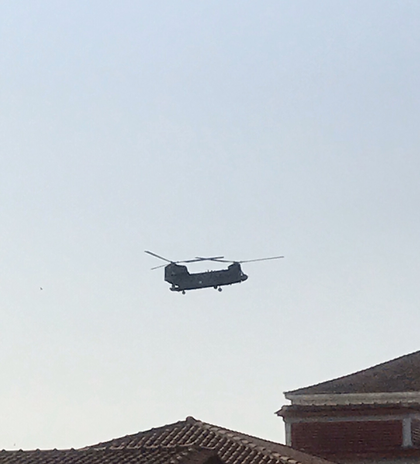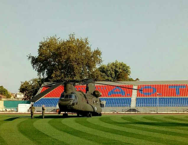 Με ελικόπτερο τύπου Σινούκ προσγειώθηκε λίγο μετά τις 9 π.μ. στο Στάδιο των Τρικάλων ο πρωθυπουργός.