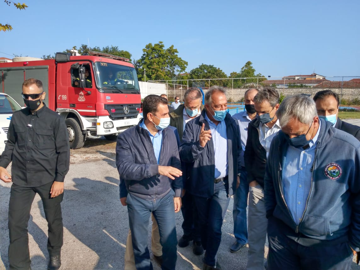 Τον Κυριάκο Μητσοτάκη συνοδεύουν Υπουργοί και επιτελικά στελέχη της Κυβέρνησης. Το κυβερνητικό κλιμάκιο έγινε δεκτό από τον υφυπουργό Κώστα Σκρέκα, τον αντιπεριφερειάρχη Χρήστο Μιχαλάκη και τον δήμαρχο Δημήτρη Παπαστεργίου, αμέσως δε αναχώρησε για Καρδίτσα όπου θα πραγματοποιηθεί ευρεία σύσκεψη και αυτοψία στις πληγείσες περιοχές.