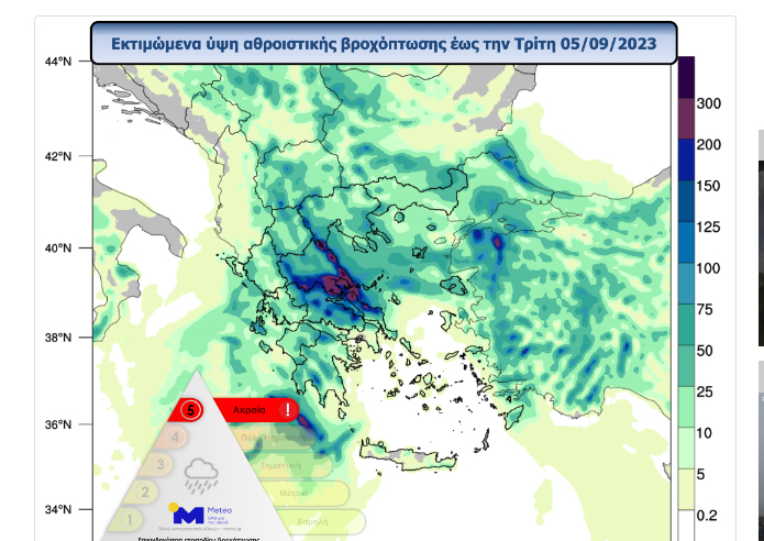 Σύμφωνα με τα νεότερα διαθέσιμα προγνωστικά στοιχεία του Εθνικού Αστεροσκοπείου Αθηνών/meteo.gr, ήδη εκδηλώνεται σημαντική επιδείνωση του καιρού στη χώρα μας με ισχυρές βροχές και καταιγίδες από τη Δευτέρα 04.09.2023 έως τουλάχιστον και την Τετάρτη 06.09.2023.