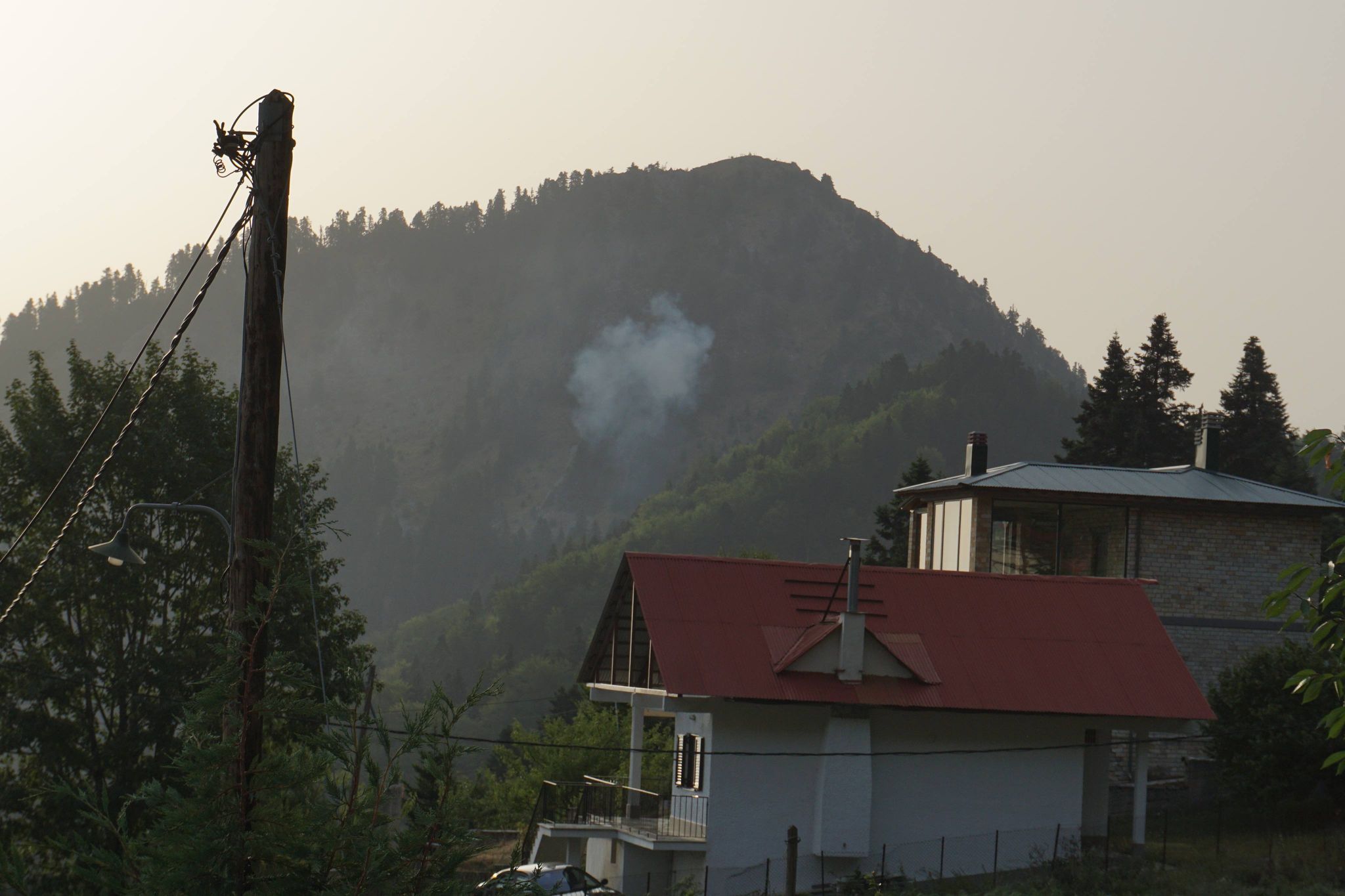 Εξακολουθεί να σιγοκαίει και με το πρώτο φως της μέρας η μικρή φωτιά σε απόκρημνη πλαγιά του δάσους πάνω από τα Στουρναρέικα.
