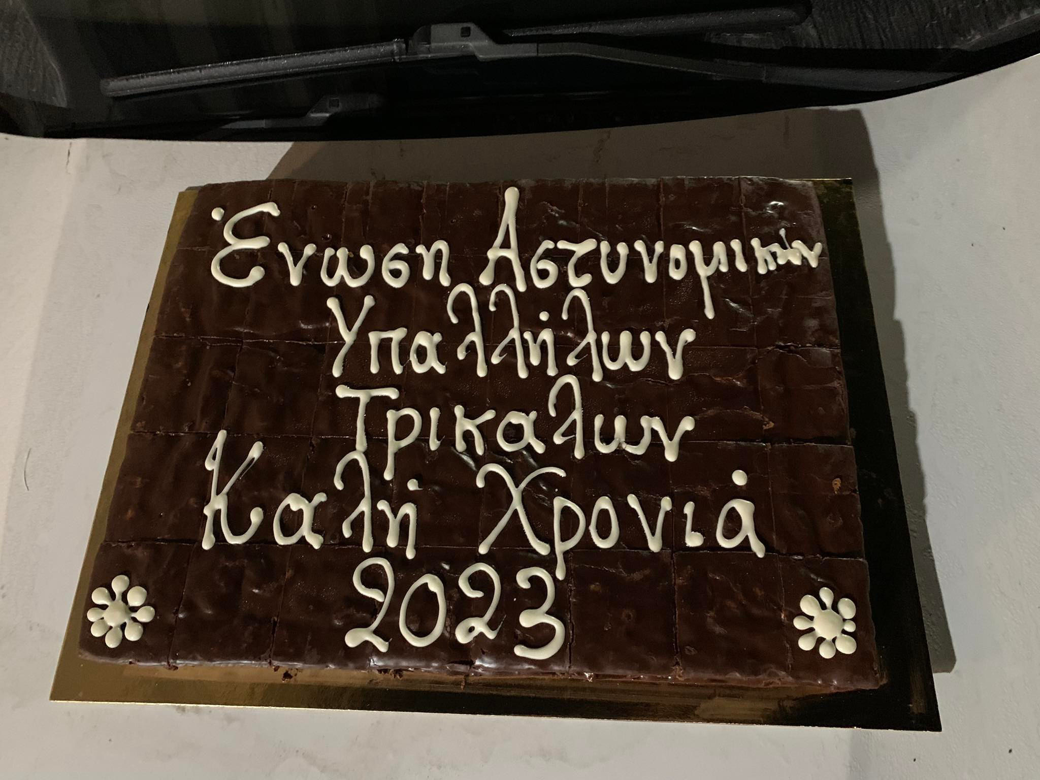 Λίγο πριν την αλλαγή του χρόνου ο Αστυνομικός Διευθυντής Δημήτρης Μήτραινας, μαζί με τον πρόεδρο και τον γραμματέα της Ένωσης Γιάννη Αναγνώστου και Λάμπρο Μητσικό έκοψαν τη βασιλόπιτα στην έδρα της Α.Δ. Τρικάλων, ενώ ο αντιπρόεδρος Αριστοτέλης Σιακαβάρας μοίρασε βασιλόπιτες και δώρα στους συναδέλφους των περιφερειακών τμημάτων.