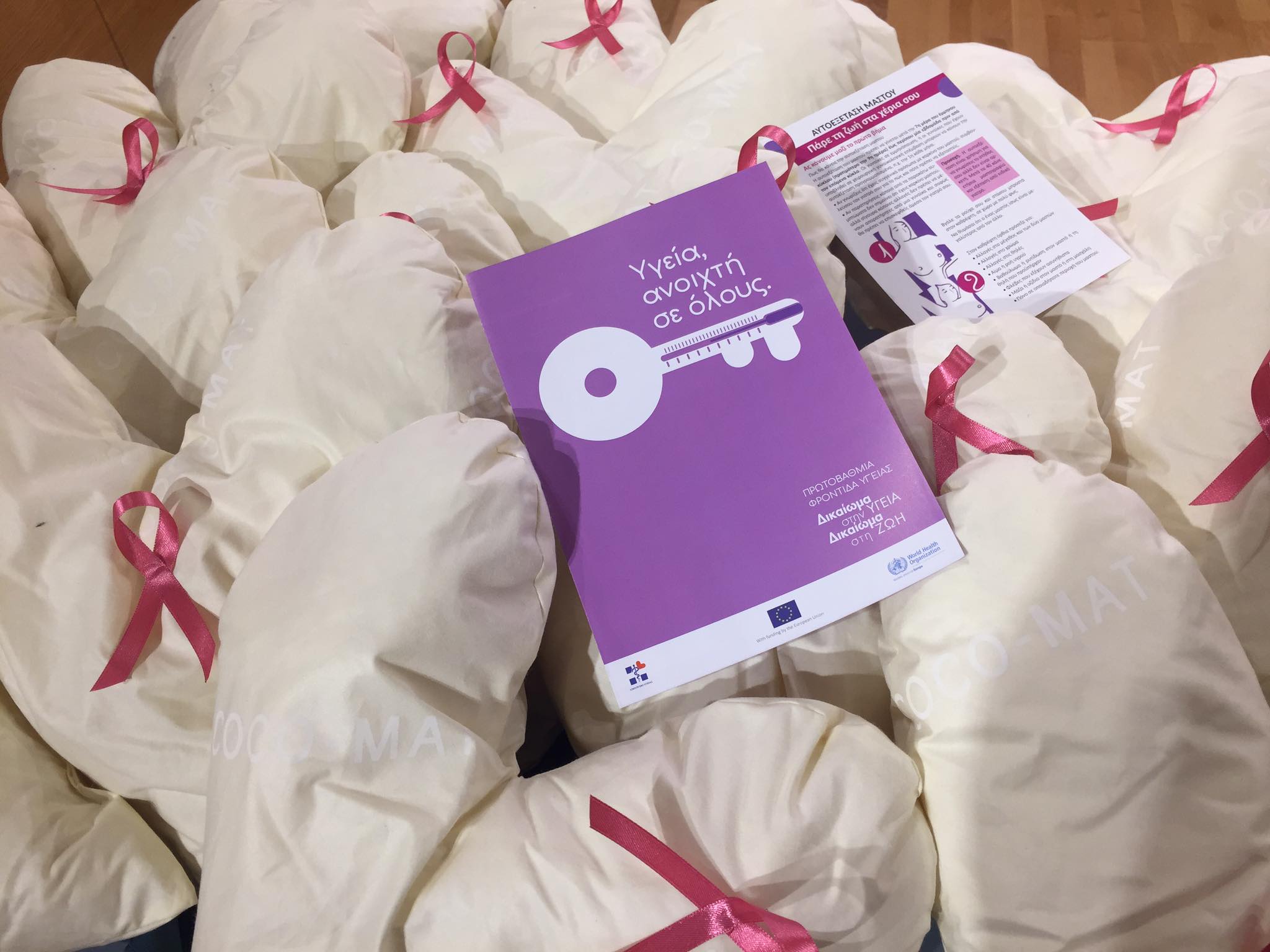 Η Coco Mat Φίλιππος-Σοφία Βλόντζου προσέφεραν μαξιλαράκια, μαξιλαράκια σε σχήμα καρδιάς σε γυναίκες που έχουν αντιμετωπίσει τον καρκίνο του μαστού.