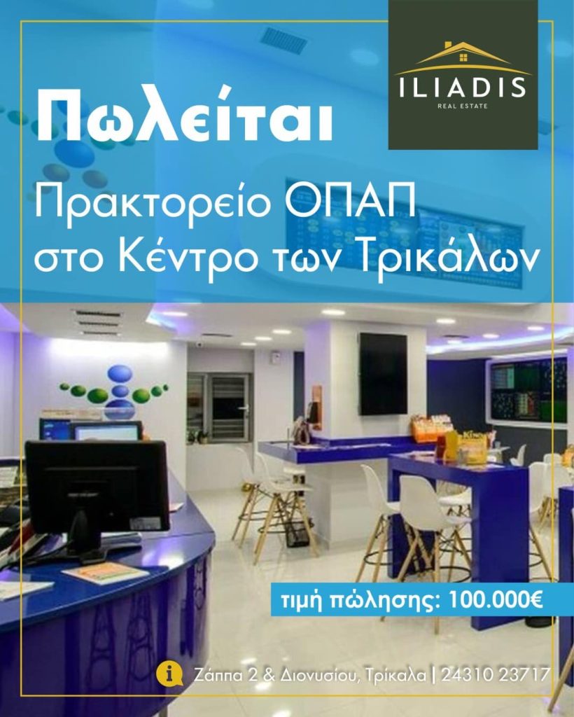 Προς 100.000 € πωλείται κεντρικό πρακτορείο ΟΠΑΠ στην πόλη των Τρικάλων.