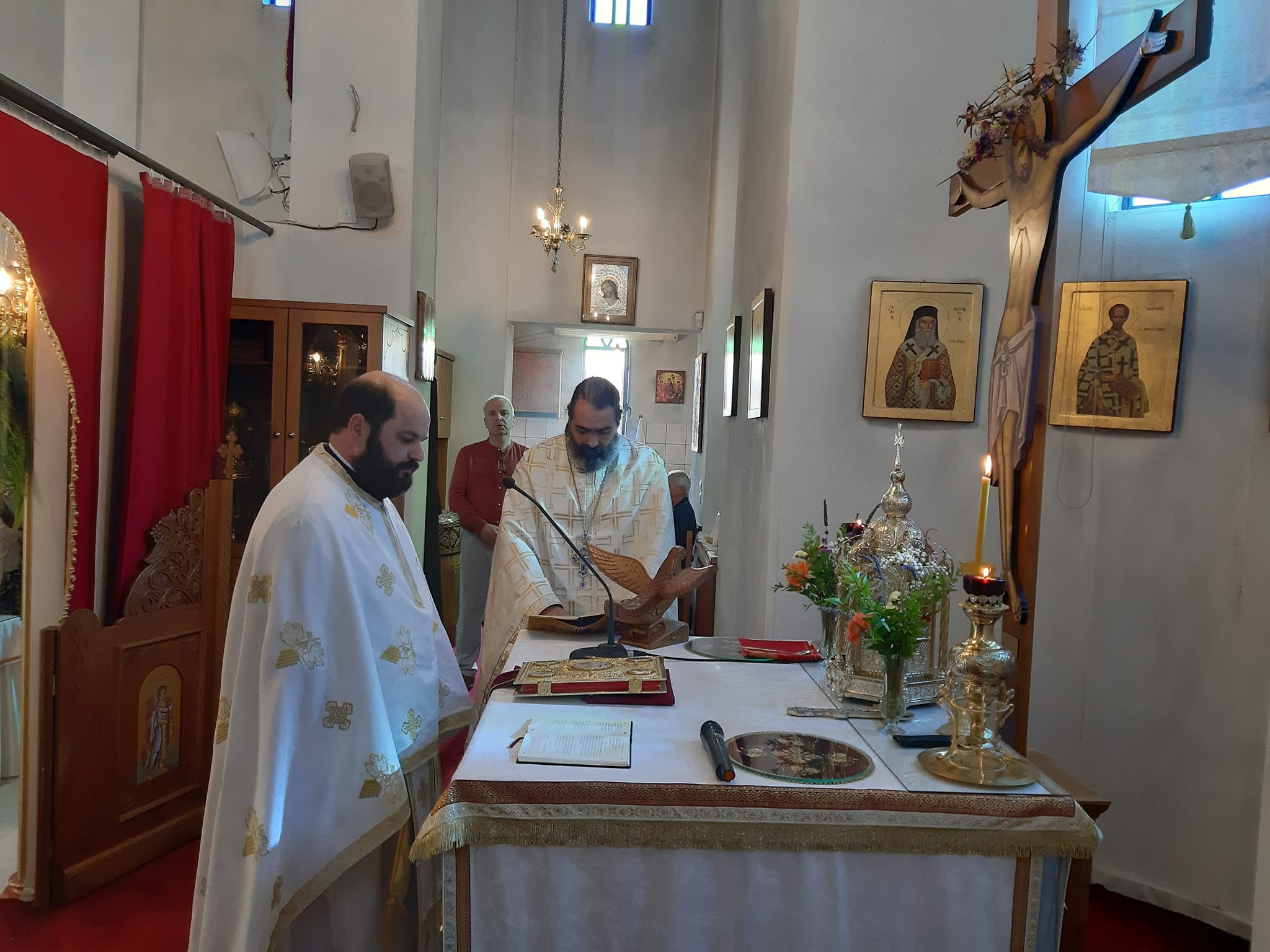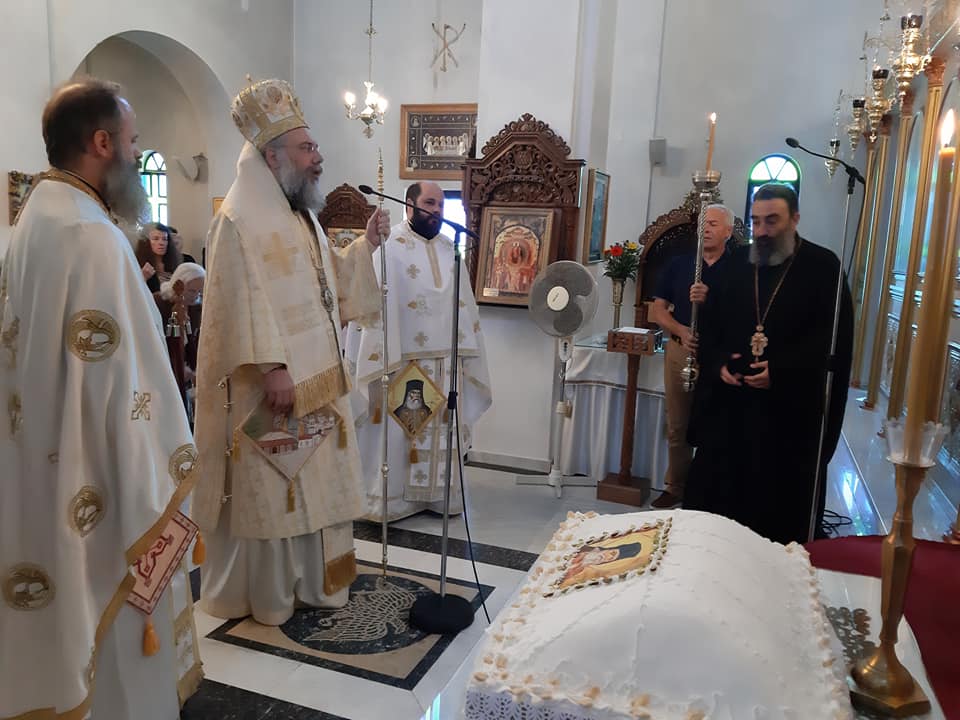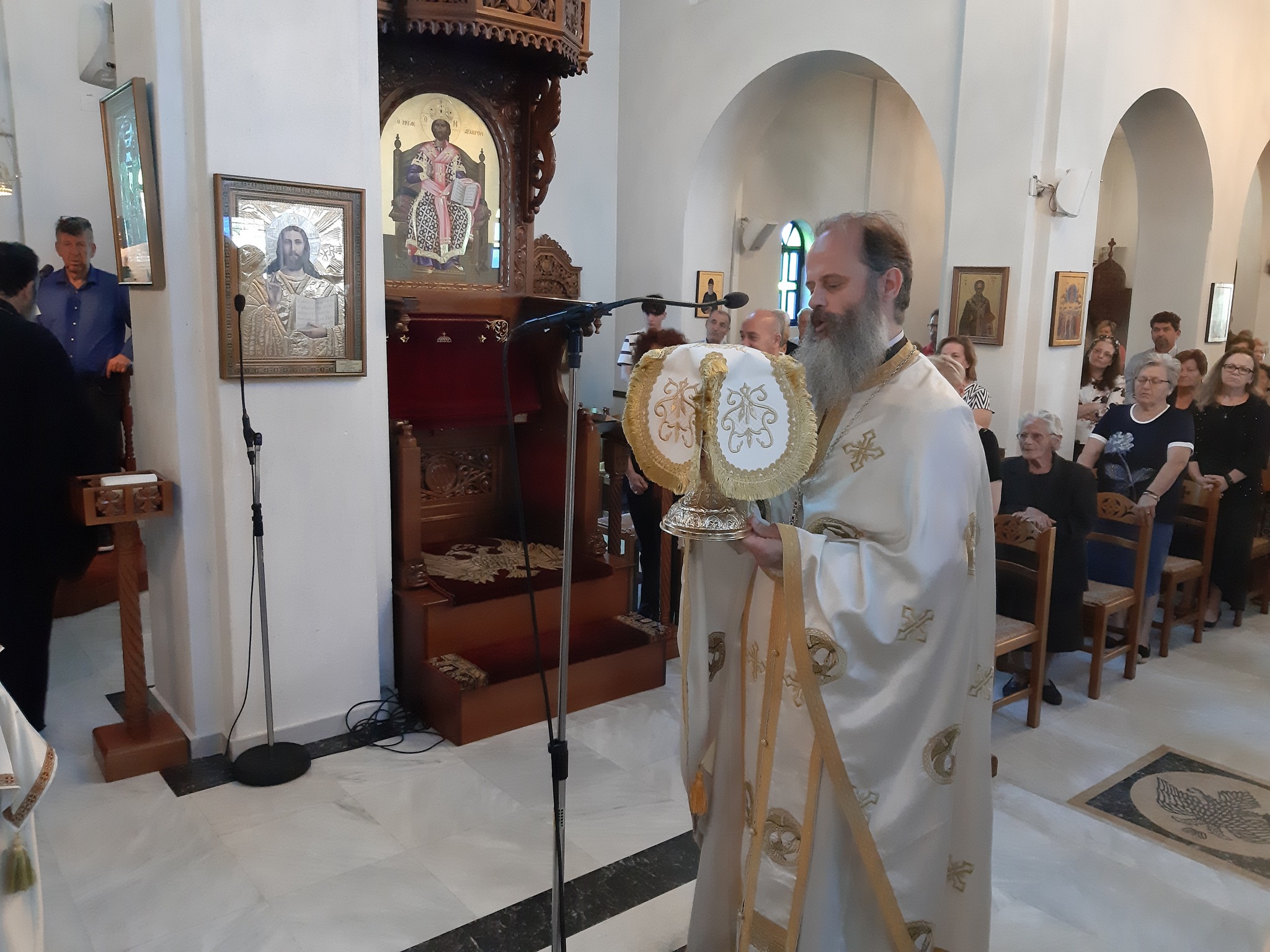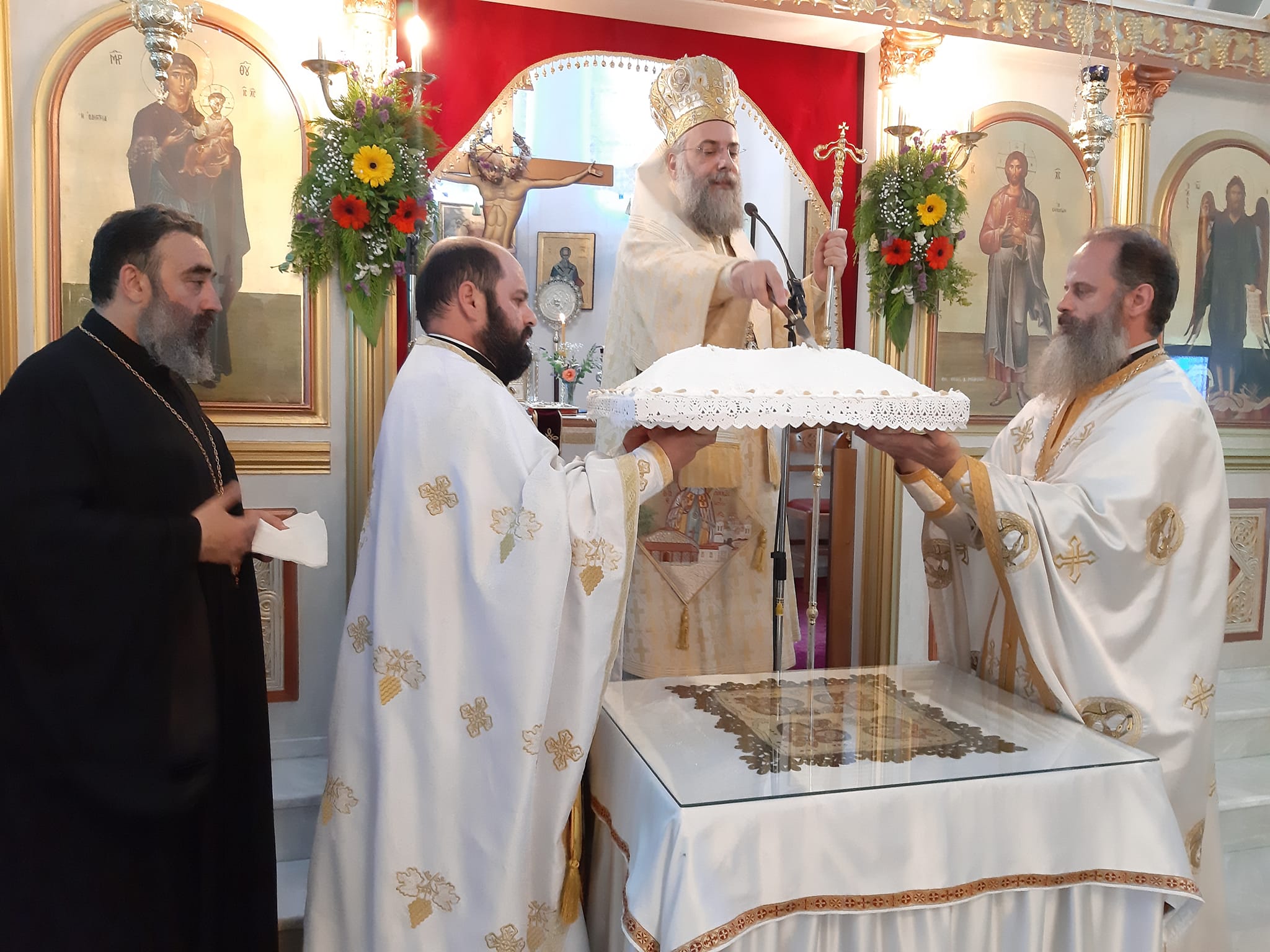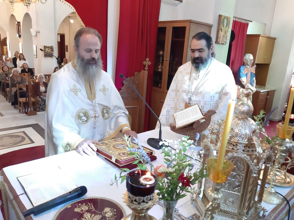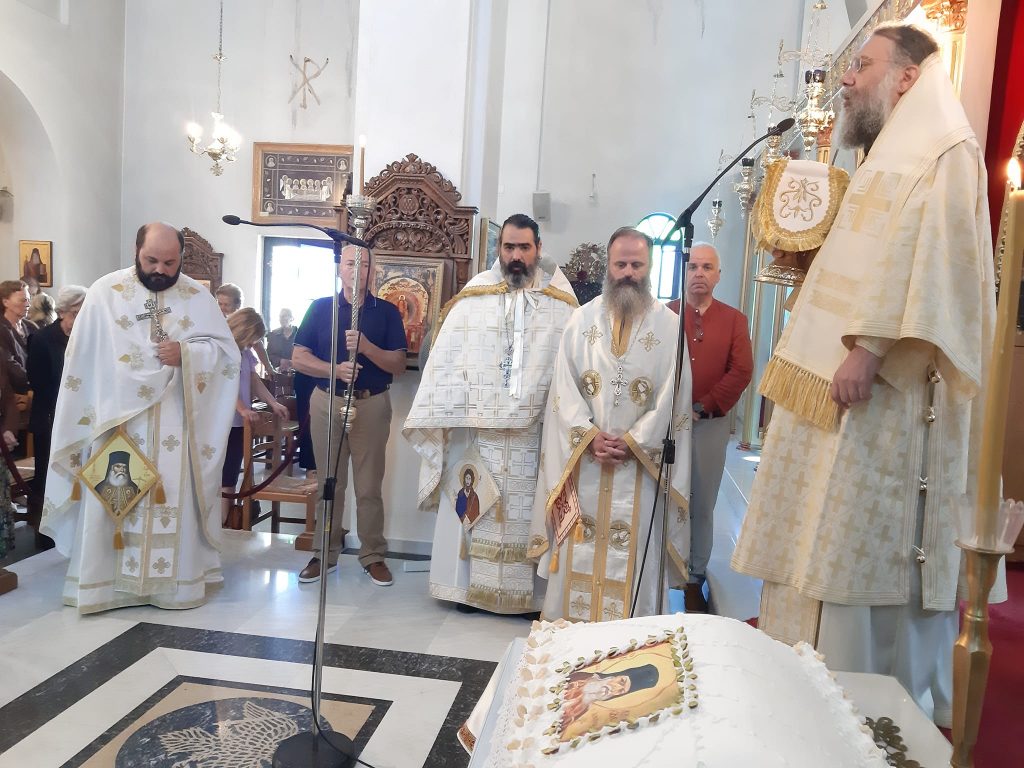Προεξήρχε ο Μητροπολίτης Τρίκκης, Σταγών και Γαρδικίου Χρυσόστομος, πλαισιούμενος από τους πατέρες Σπυρίδωνα Σπύρου και Νεκτάριο Σπηλιά, της καθ’ ημάς Μητροπόλεως, καθώς και του πατρός Ευάγγελου Σαμαρά, της Μητροπόλεως Ελασσόνας, ο οποίος επί χρόνια διακόνησε στο αναλόγιο του εν λόγω Ιερού Ναού ως πρωτοψάλτης. Συμπροσευχόμενος παρέστη ο εφημέριος του Ναού π. Βασίλειος Μπούκης. Πλήθος πιστών συνέρρευσε και φέτος για να προσκυνήσει την Τιμία Κάρα του Αγίου.