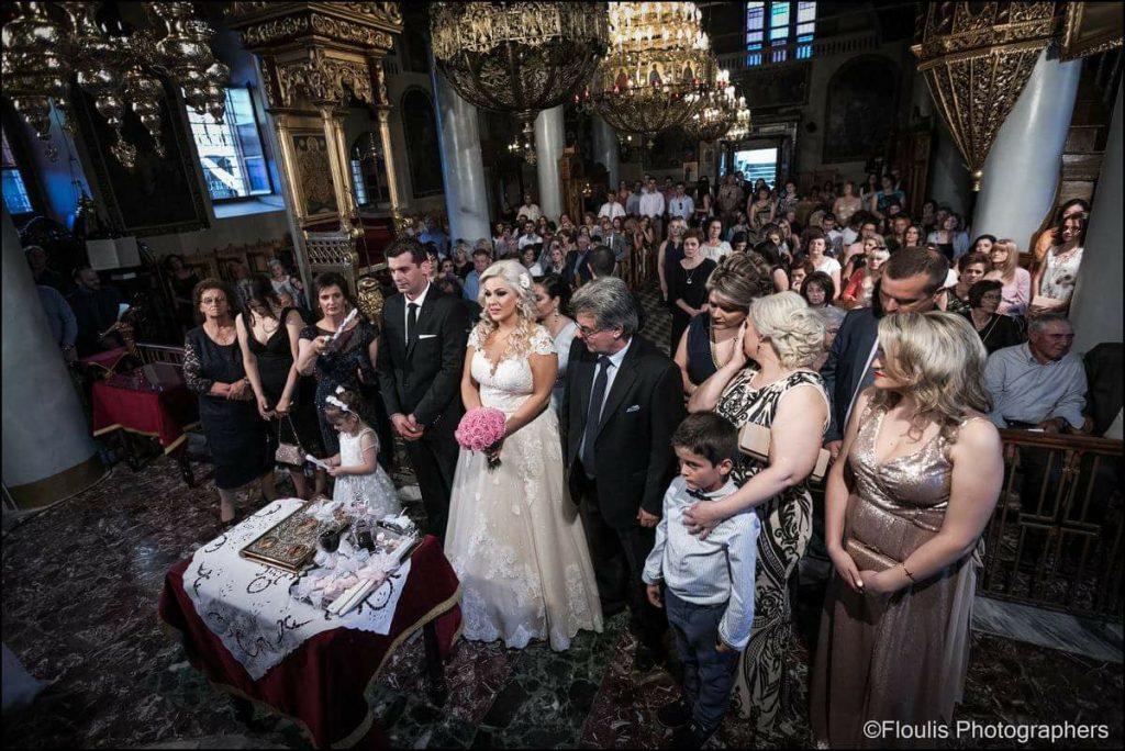 Το Μυστήριο τελέστηκε στον Ι.Ν. Παναγίας Φανερωμένης Τρικάλων, με κουμπάρους τον Δημήτρη και την Αθηνά Μπουνταλά, παρουσία εκατοντάδων προσκεκλημένων, συγγενών και φίλων.