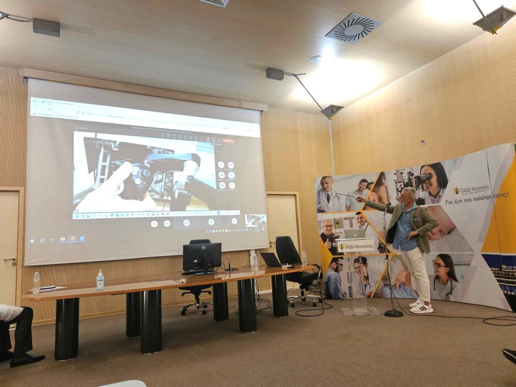 Ανέλυσε, επίσης τα χαρακτηριστικά του ρομποτικού συστήματος Versius® της παγκόσμιας εταιρίας CMR Surgical, με προηγμένη τεχνολογία από το Cambridge της Αγγλίας, που έχει εγκατασταθεί στο ΙΑΣΩ Θεσσαλίας από την αρχή του έτους και καλύπτει μία ευρεία γκάμα χειρουργικών επεμβάσεων γενικής χειρουργικής, ουρολογίας, γυναικολογίας και θωρακικής χειρουργικής. Τόνισε, πως το ρομποτικό σύστημα Versius γίνεται πολύτιμο εργαλείο στα χέρια ενός καλού χειρουργού, καθώς, η τρισδιάστατη εικόνα υψηλής ευκρίνειας, το σταθερό χειρουργικό πεδίο, η εκτέλεση όλων των κινήσεων που κάνει το ανθρώπινο χέρι, από τους αρθρωτούς βραχίονες του ρομπότ, η υψηλή εργονομία και η καθιστή θέση του χειρουργού, επιτρέπουν την επιτυχή διεκπεραίωση ακόμη και των δυσκολότερων περιστατικών και τη διενέργεια πολύωρων επεμβάσεων με απόλυτη ακρίβεια και σταθερότητα.